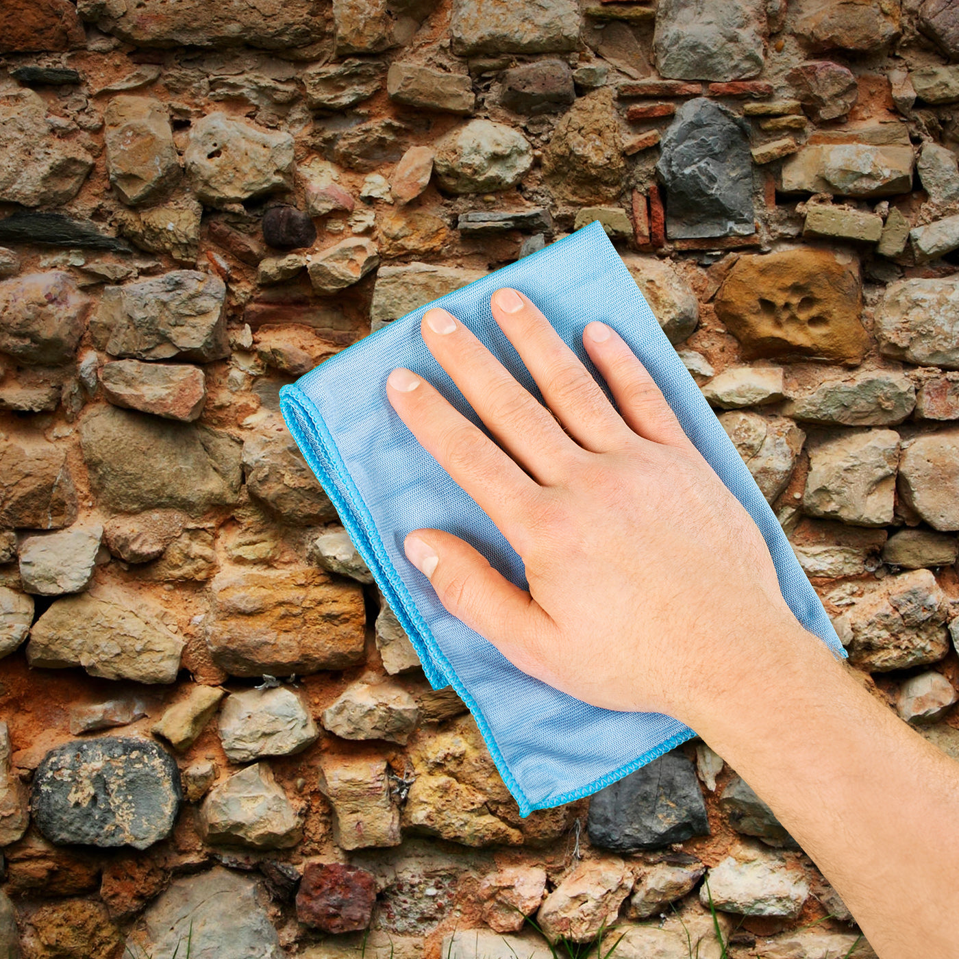 - Reinige eventuelle Verschmutzungen oder Kleberreste sofort mit einem feuchten Schwamm oder Tuch.