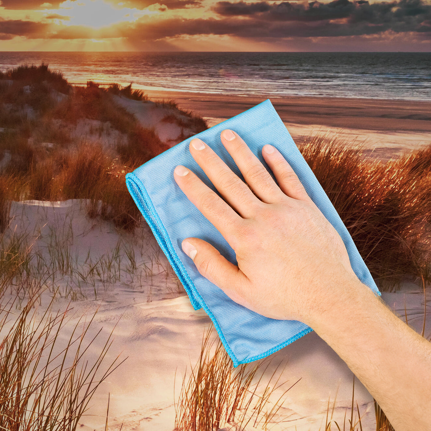 - Reinige eventuelle Verschmutzungen oder Kleberreste sofort mit einem feuchten Schwamm oder Tuch.