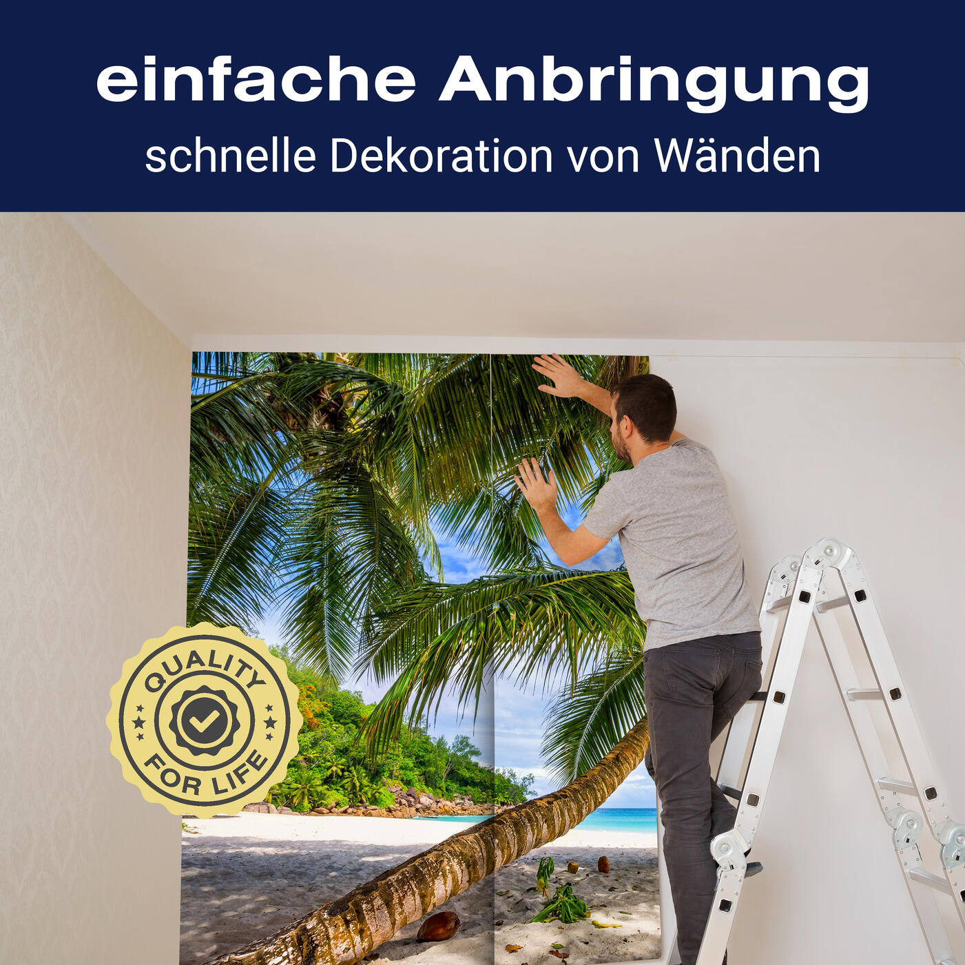 Träumst Du davon, Deine Wände in eine beeindruckende Kunstgalerie zu verwandeln? Mit unserer hochwertigen Fototapete Strand Meer Palmen M6857 ist es jetzt möglich! Jede Wand wird zu einer Leinwand Deiner Kreativität.