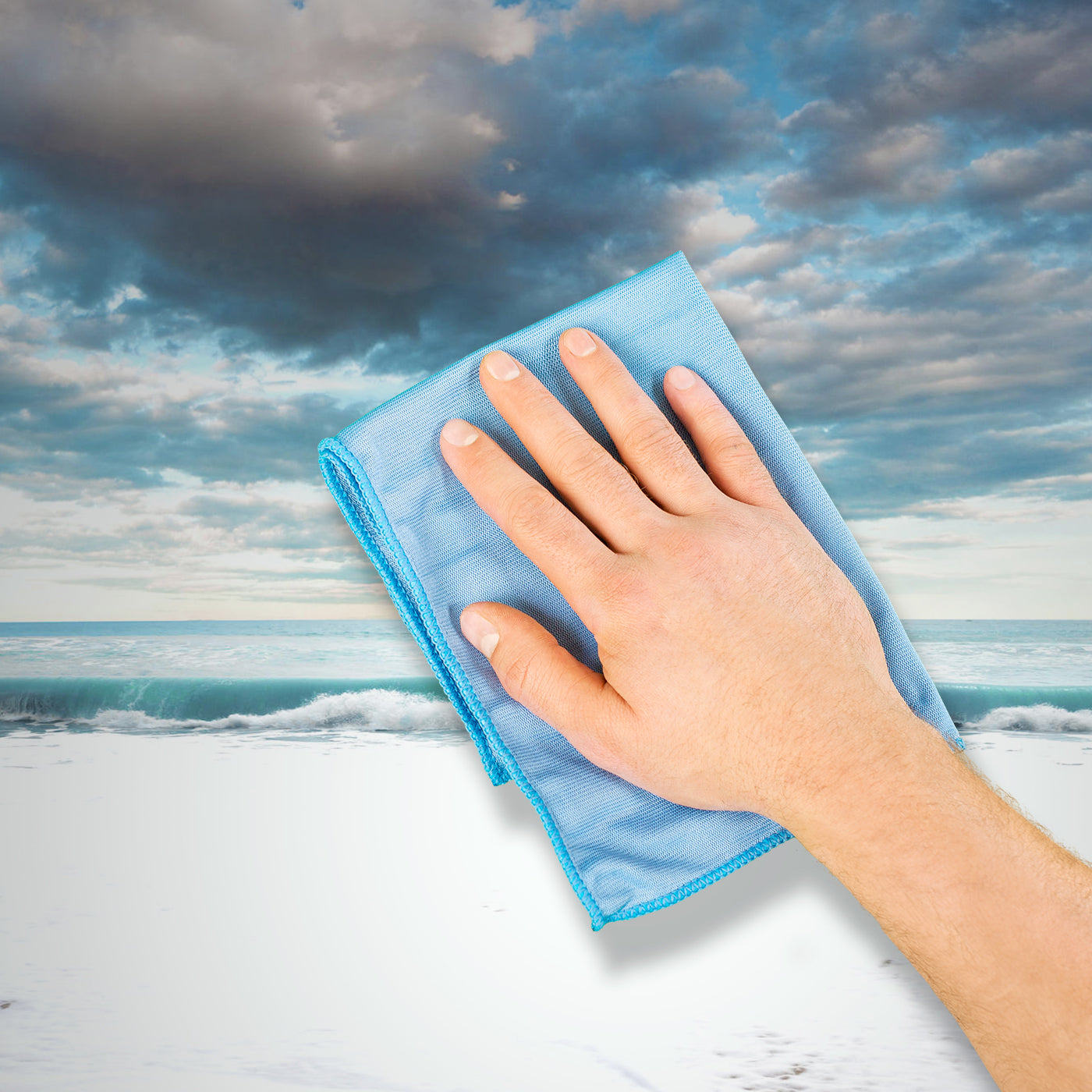 - Reinige eventuelle Verschmutzungen oder Kleberreste sofort mit einem feuchten Schwamm oder Tuch.