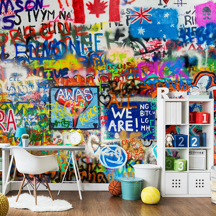 Träumst Du davon, Deine Wände in eine beeindruckende Kunstgalerie zu verwandeln? Mit unserer hochwertigen Fototapete Streetart Wörter Bunt M5944 ist es jetzt möglich! Jede Wand wird zu einer Leinwand Deiner Kreativität.