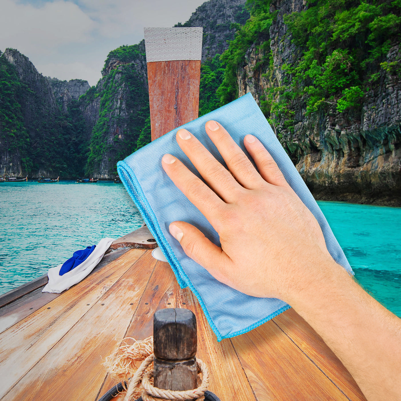 - Reinige eventuelle Verschmutzungen oder Kleberreste sofort mit einem feuchten Schwamm oder Tuch.