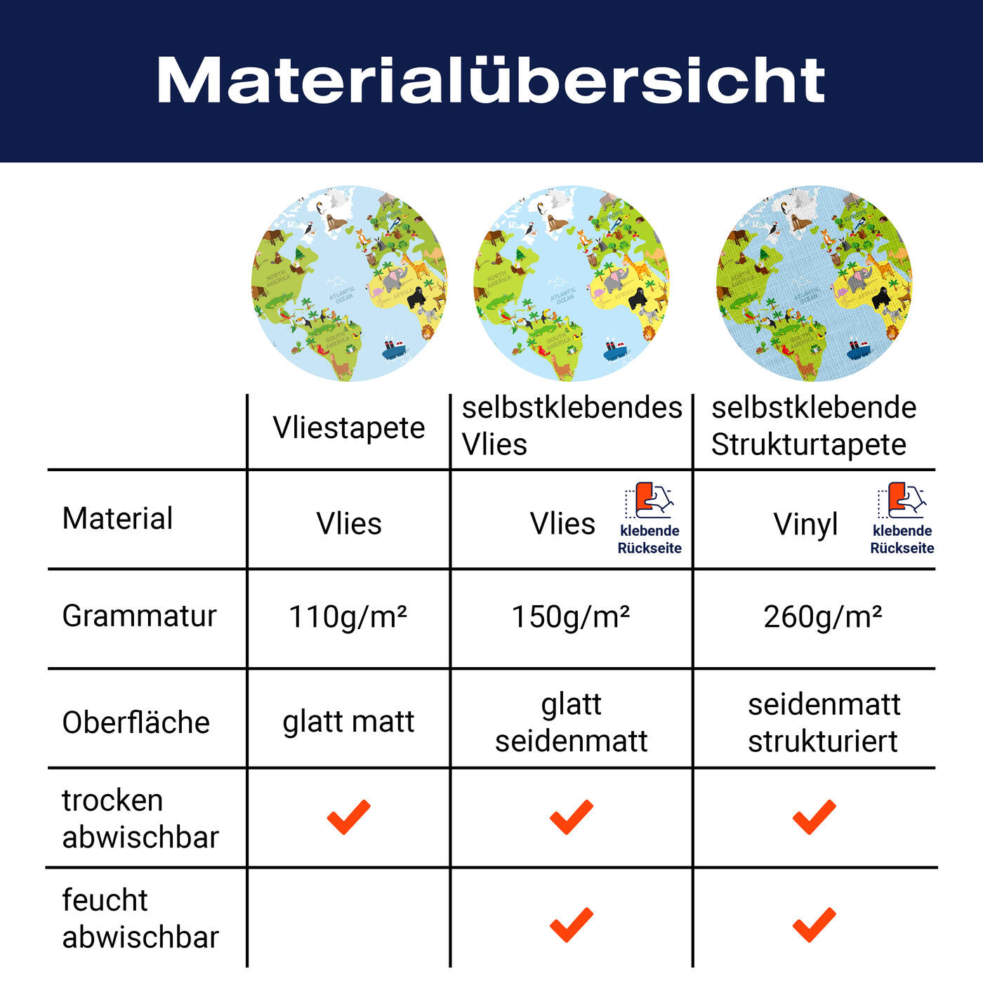 - Selbstklebendes Vlies 150g/m²: Einfach anzubringen, perfekt für Mietwohnungen.