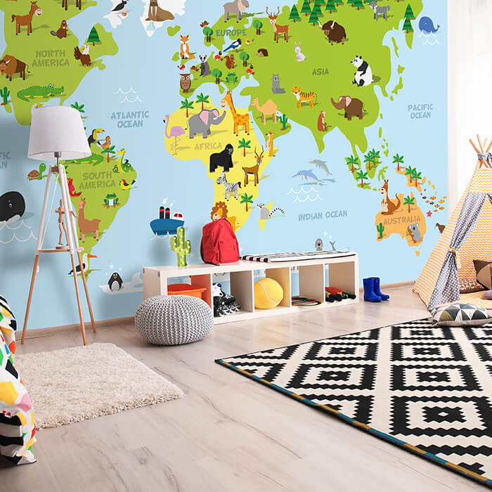 Träumst Du davon, Deine Wände in eine beeindruckende Kunstgalerie zu verwandeln? Mit unserer hochwertigen Fototapete Tiere Weltkarte M1426 ist es jetzt möglich! Jede Wand wird zu einer Leinwand Deiner Kreativität.