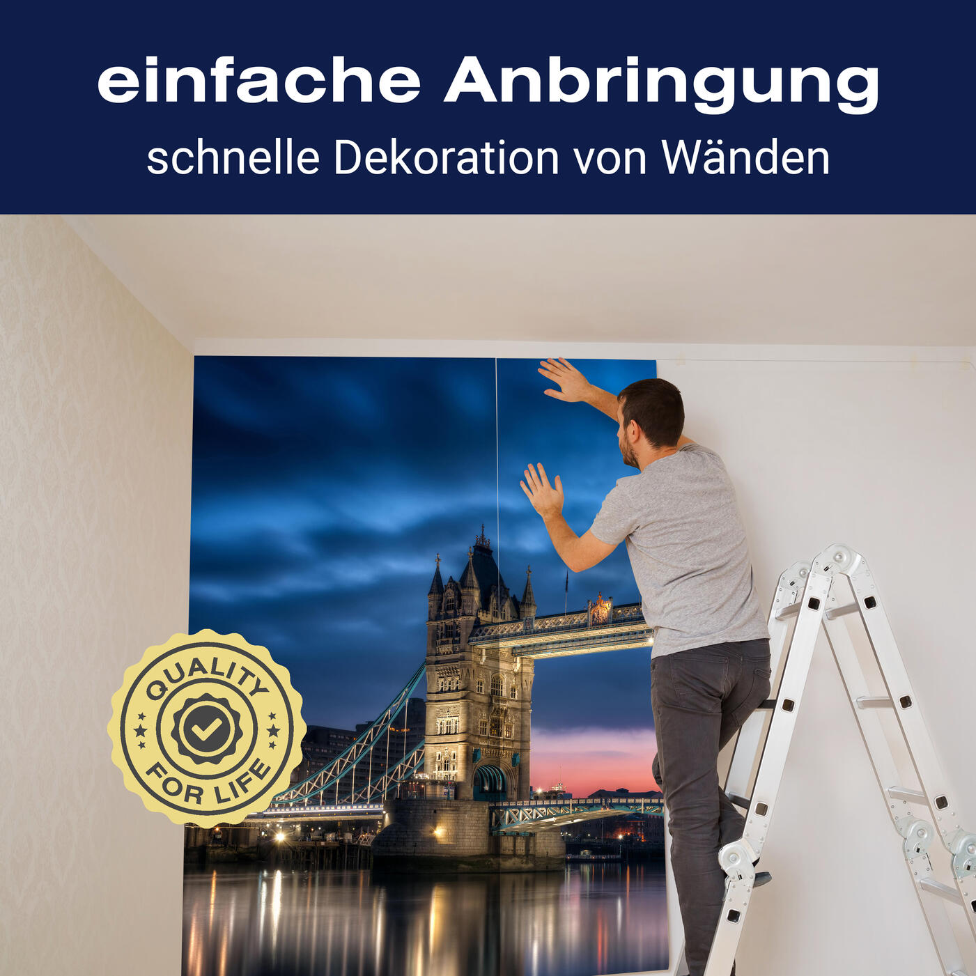 Unsere Fototapeten sind so konzipiert, dass sie ohne großen Aufwand angebracht werden können. Ob selbstklebend oder traditionell, die Anbringung ist einfach und schnell.