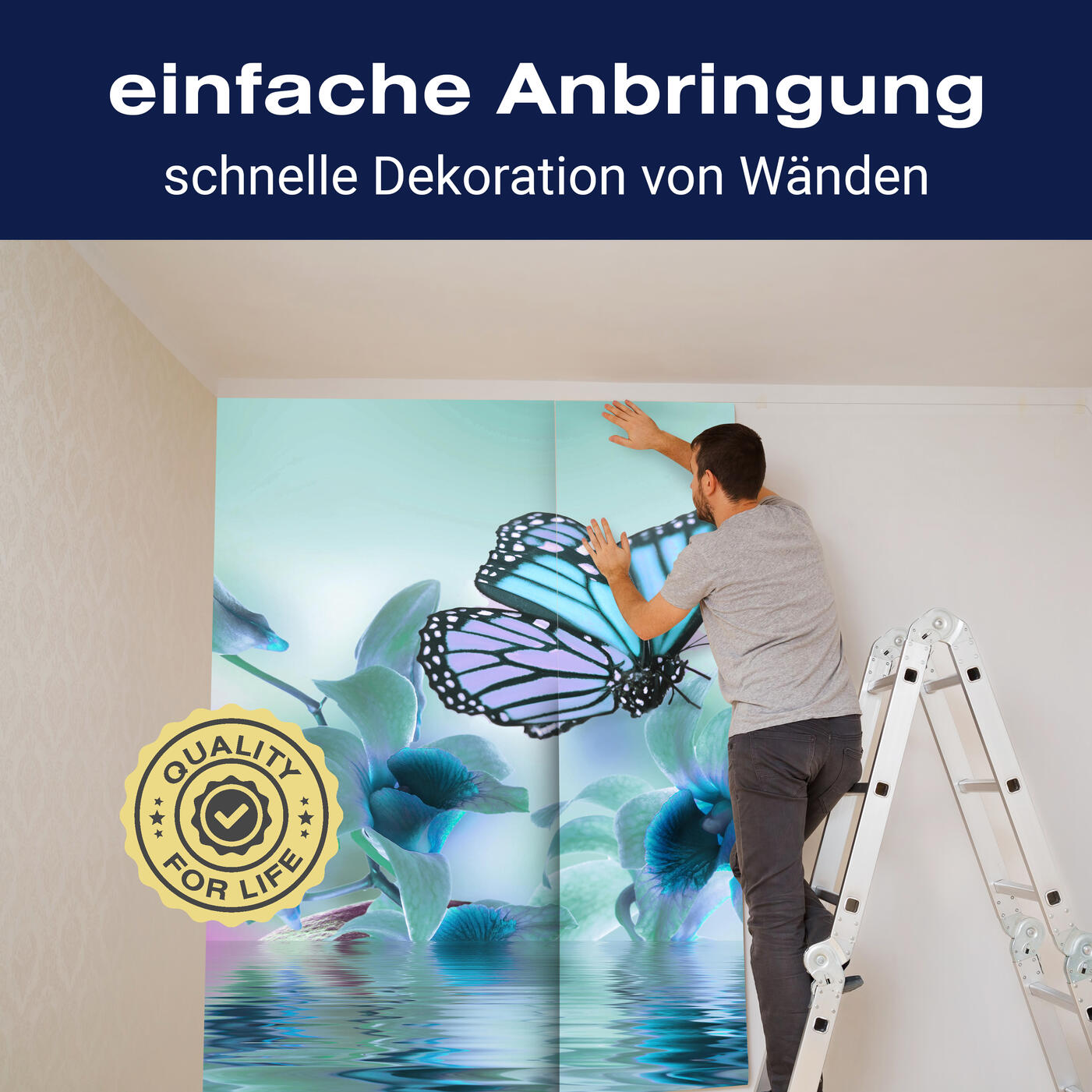 Unsere Fototapeten sind so konzipiert, dass sie ohne großen Aufwand angebracht werden können. Ob selbstklebend oder traditionell, die Anbringung ist einfach und schnell.