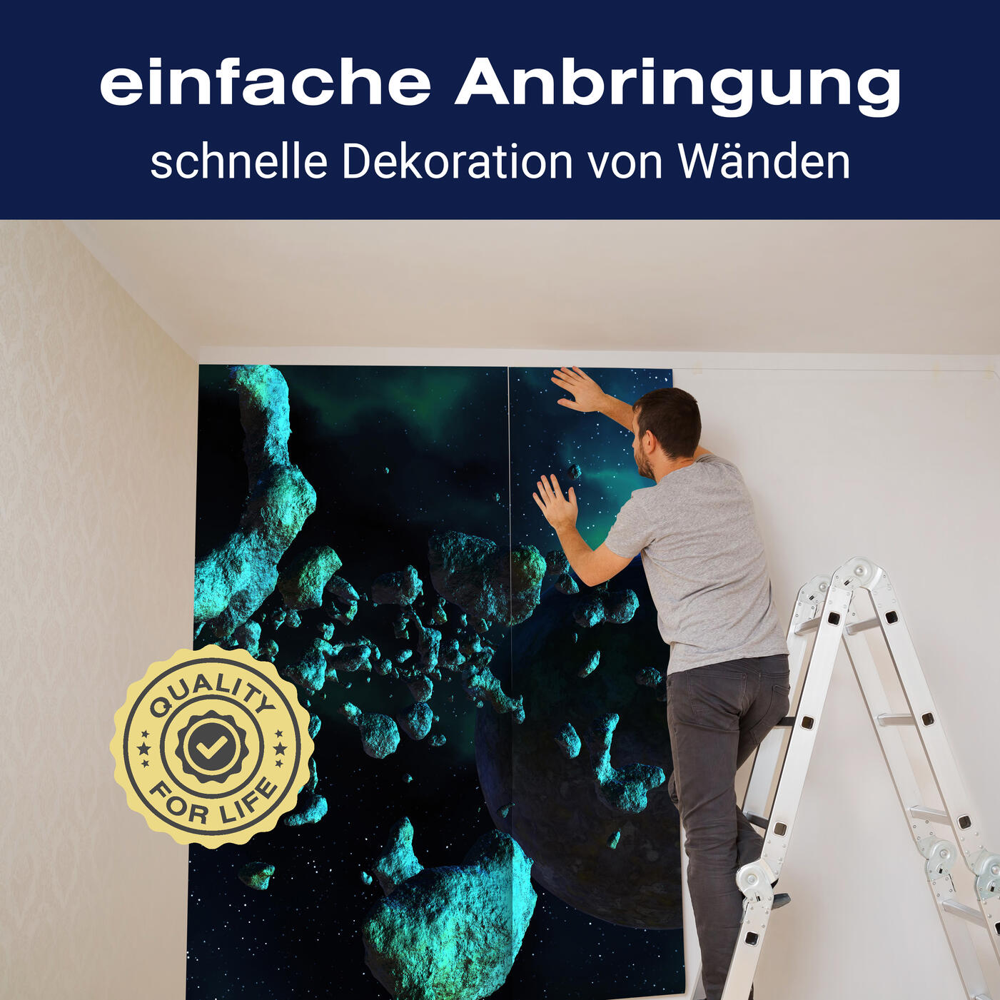 Unsere Fototapeten sind so konzipiert, dass sie ohne großen Aufwand angebracht werden können. Ob selbstklebend oder traditionell, die Anbringung ist einfach und schnell.