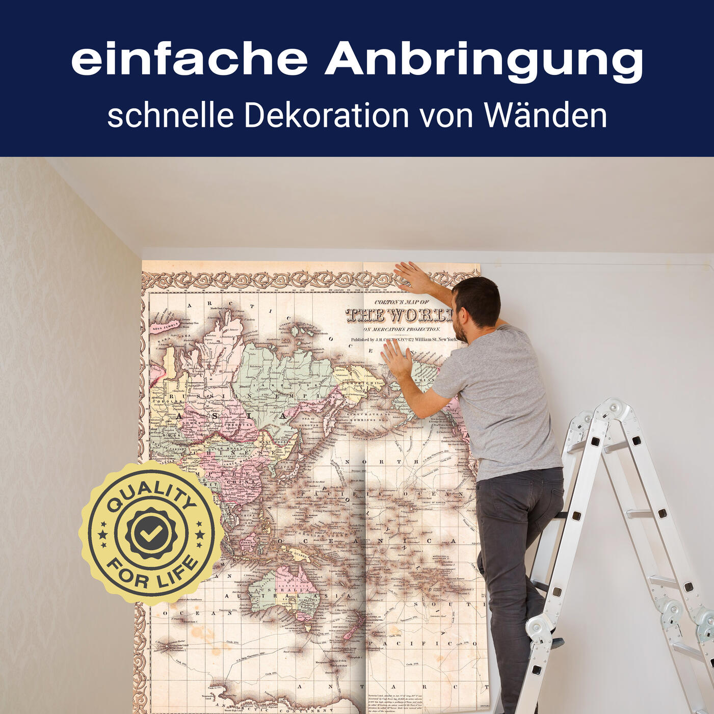 Träumst Du davon, Deine Wände in eine beeindruckende Kunstgalerie zu verwandeln? Mit unserer hochwertigen Fototapete Vintage historische Weltkarte M6646 ist es jetzt möglich! Jede Wand wird zu einer Leinwand Deiner Kreativität.