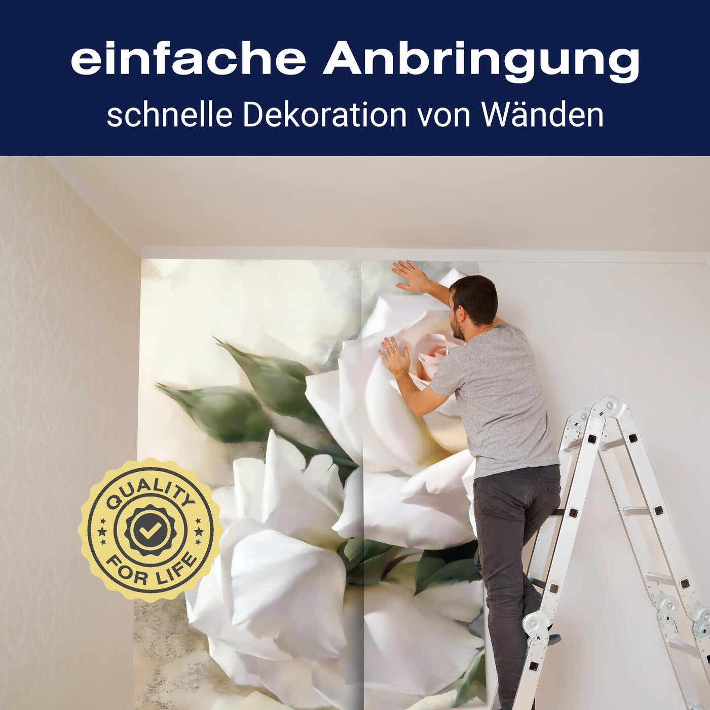 Unsere Fototapeten sind so konzipiert, dass sie ohne großen Aufwand angebracht werden können. Ob selbstklebend oder traditionell, die Anbringung ist einfach und schnell.