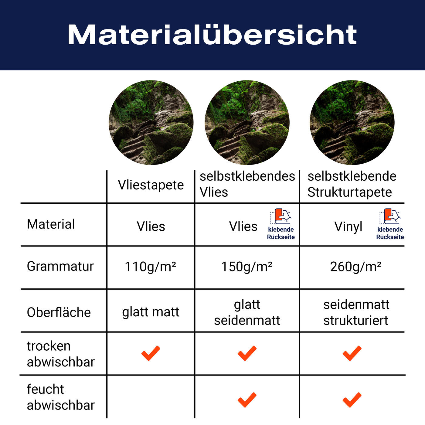 - Selbstklebendes Vlies 150g/m²: Einfach anzubringen, perfekt für Mietwohnungen.