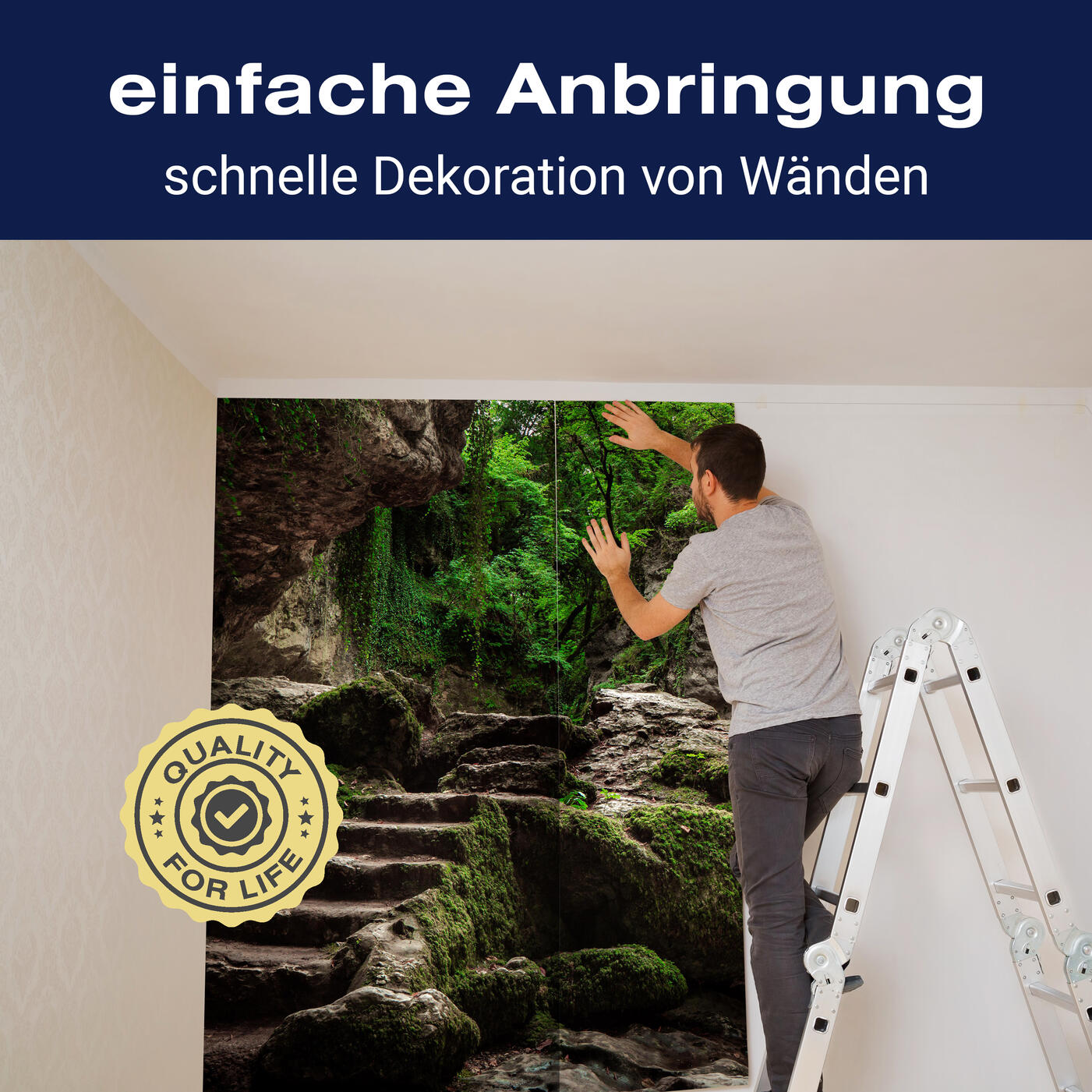 Unsere Fototapeten sind so konzipiert, dass sie ohne großen Aufwand angebracht werden können. Ob selbstklebend oder traditionell, die Anbringung ist einfach und schnell.