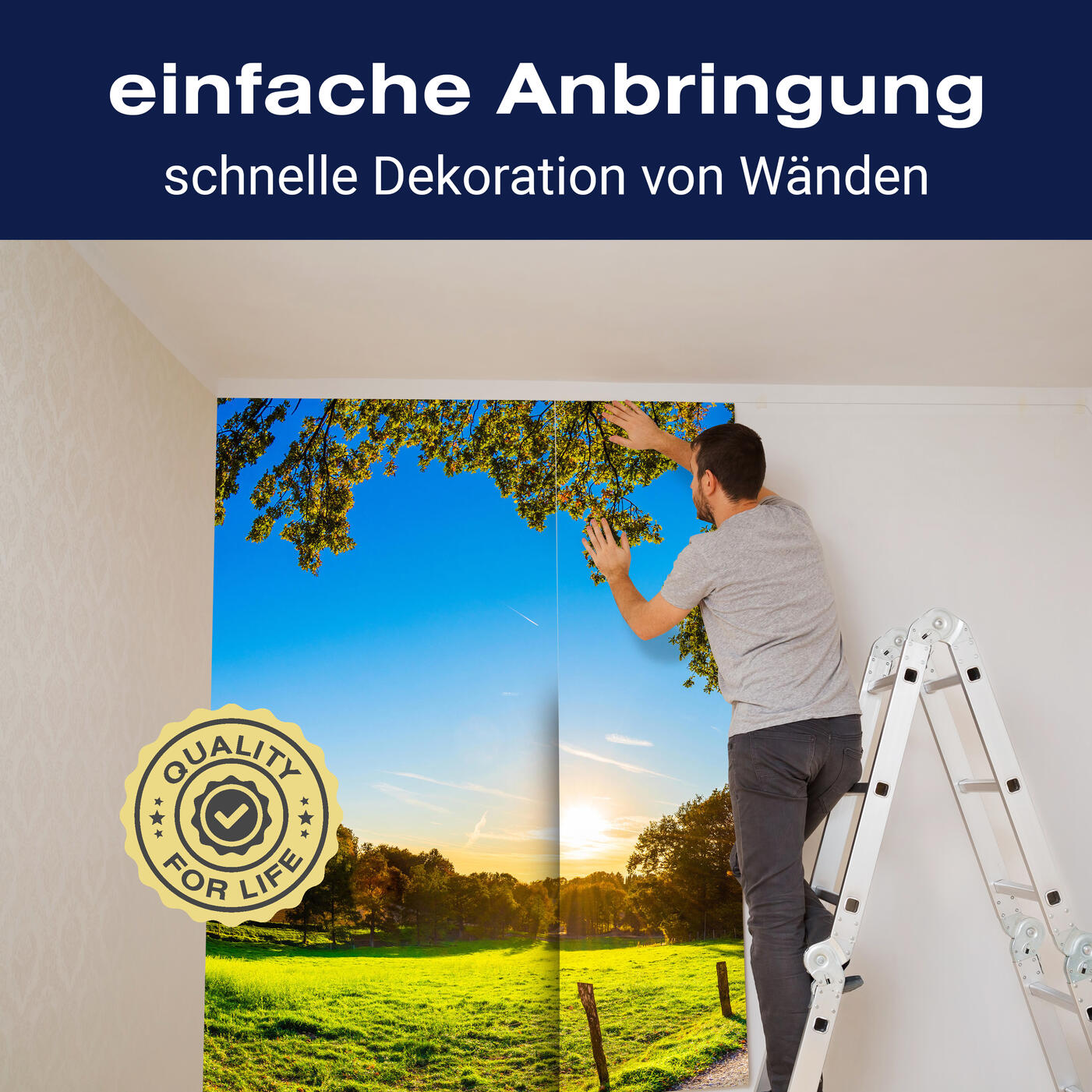Unsere Fototapeten sind so konzipiert, dass sie ohne großen Aufwand angebracht werden können. Ob selbstklebend oder traditionell, die Anbringung ist einfach und schnell.