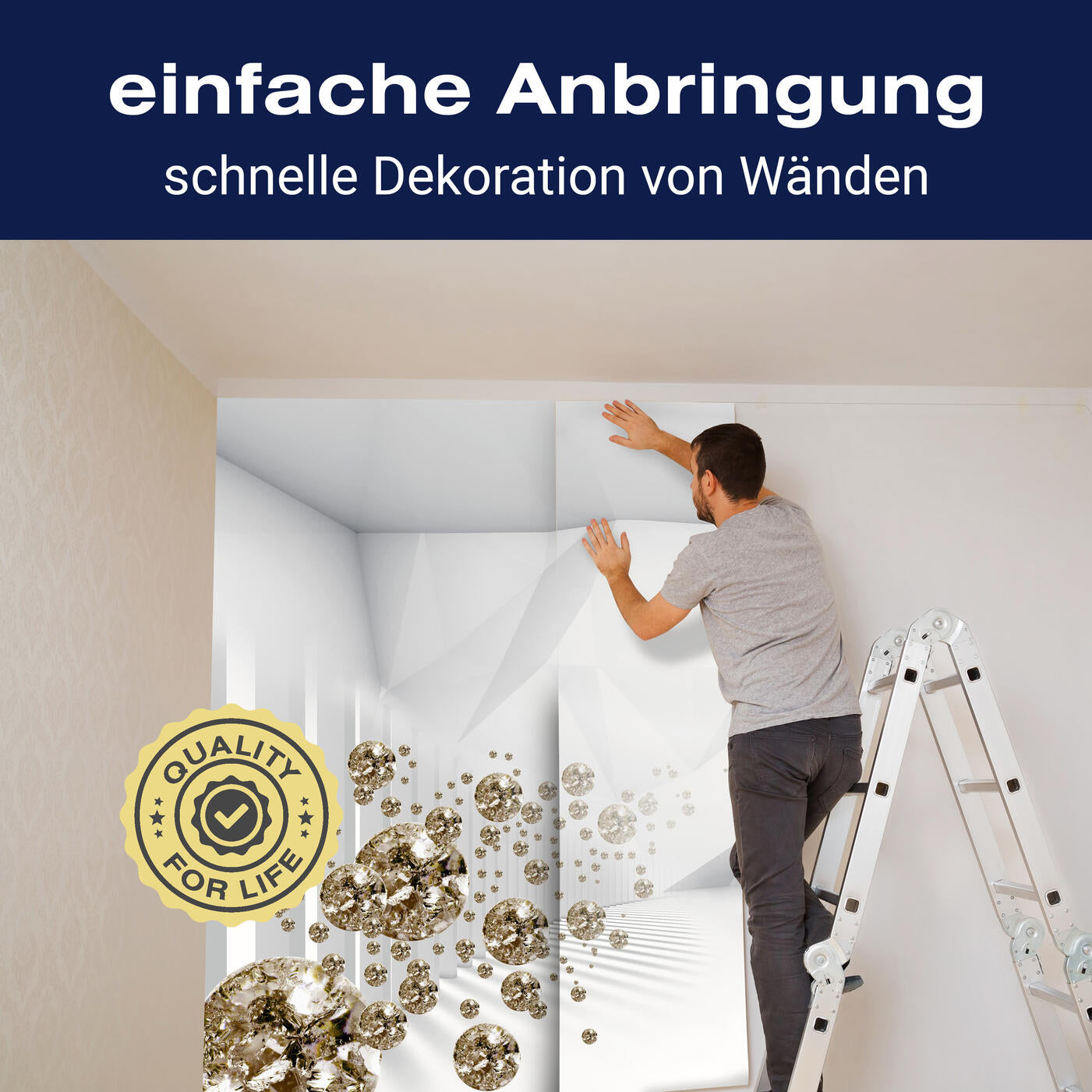 Unsere Fototapeten sind so konzipiert, dass sie ohne großen Aufwand angebracht werden können. Ob selbstklebend oder traditionell, die Anbringung ist einfach und schnell.
