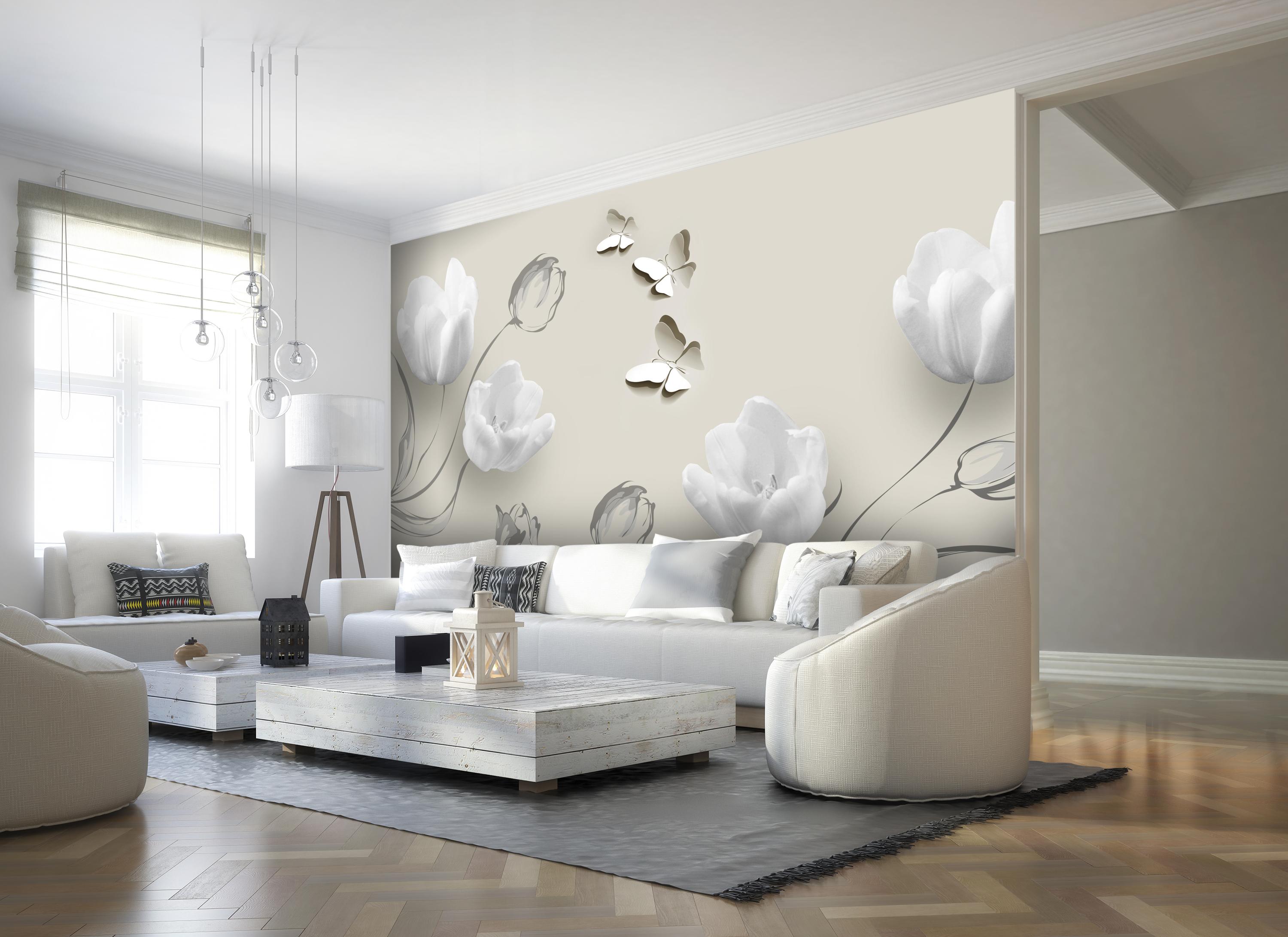 FOTOTAPETE Weisse Tulpen Ornamente