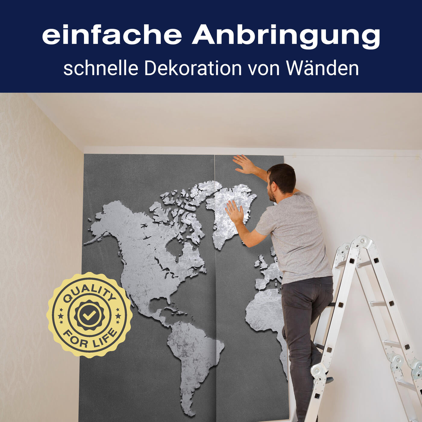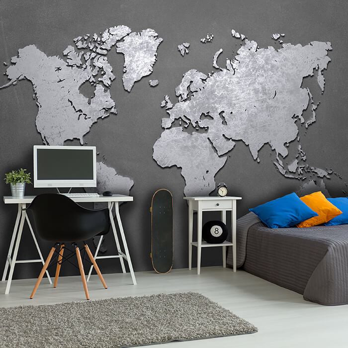 Träumst Du davon, Deine Wände in eine beeindruckende Kunstgalerie zu verwandeln? Mit unserer hochwertigen Fototapete Welt-karte metallisch M1442 ist es jetzt möglich! Jede Wand wird zu einer Leinwand Deiner Kreativität.