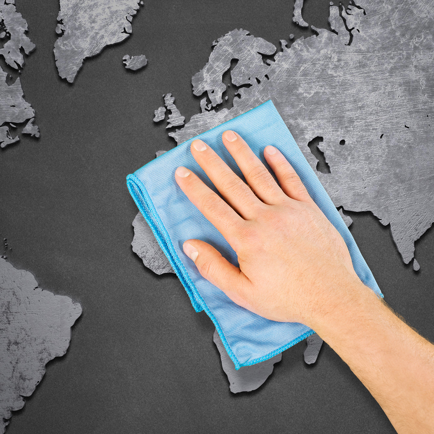 - Reinige eventuelle Verschmutzungen oder Kleberreste sofort mit einem feuchten Schwamm oder Tuch.