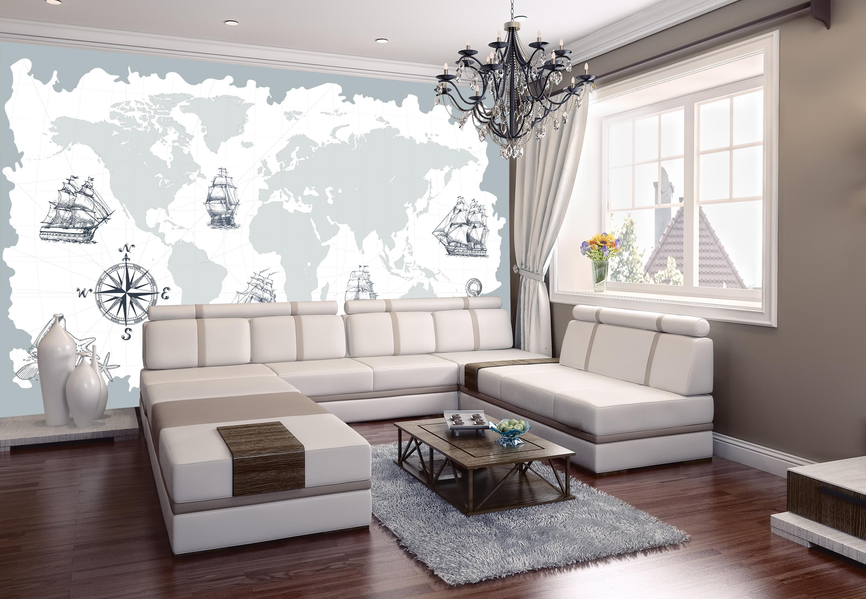 FOTOTAPETE Weltkarte vintage Hell Blau