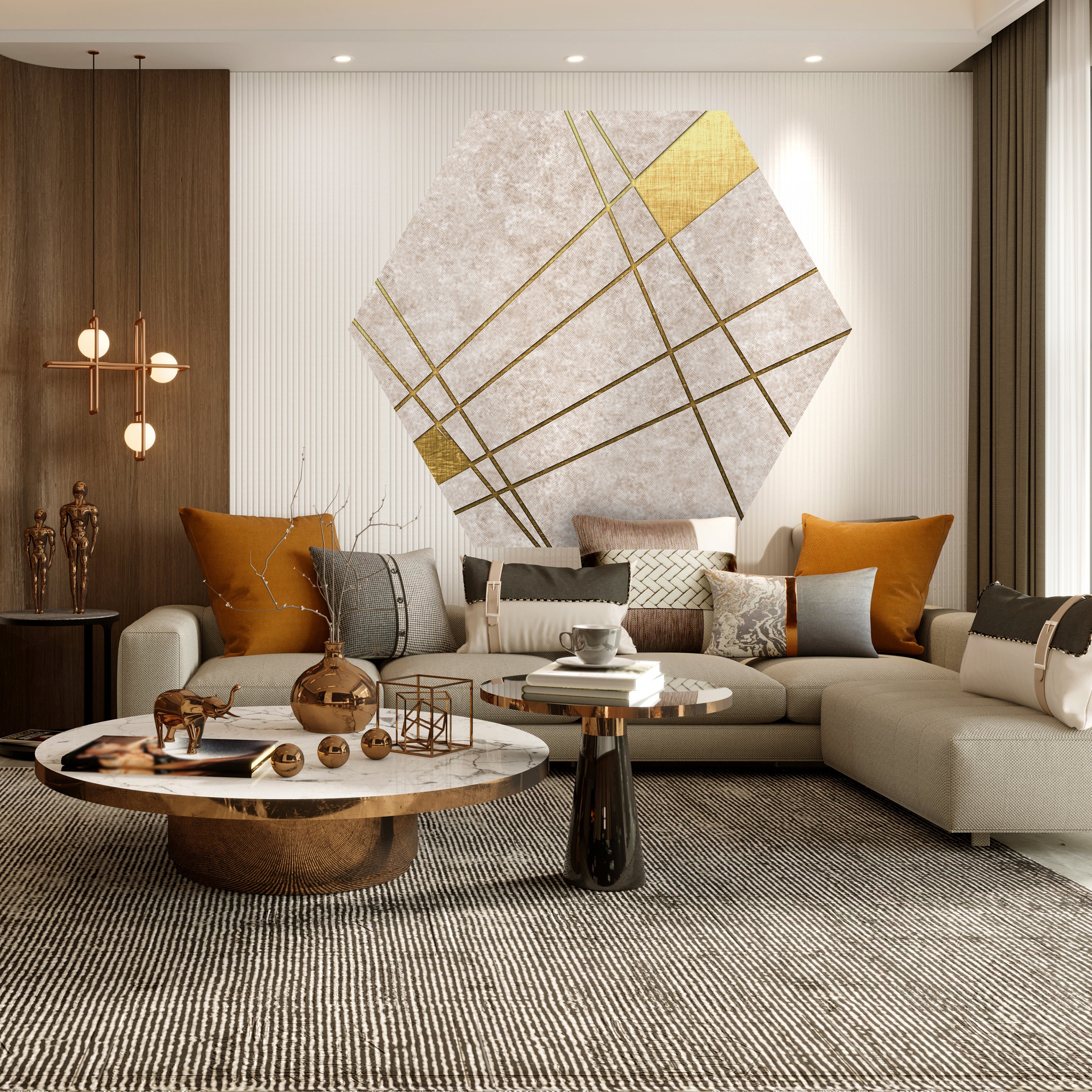 HEXAGON-FOTOTAPETE Abstrakte goldene Linien