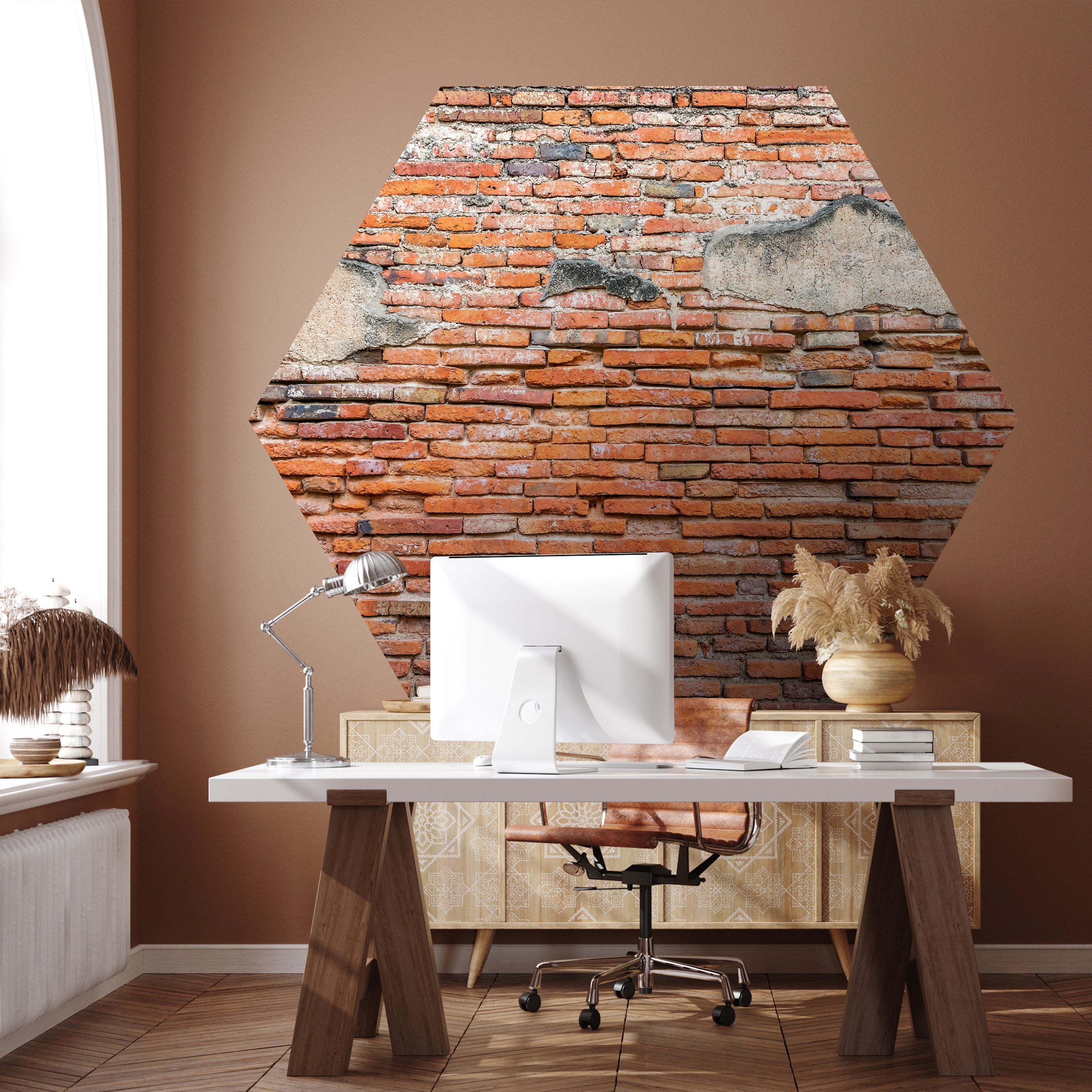 HEXAGON-FOTOTAPETE alte Ziegelwand Backstein