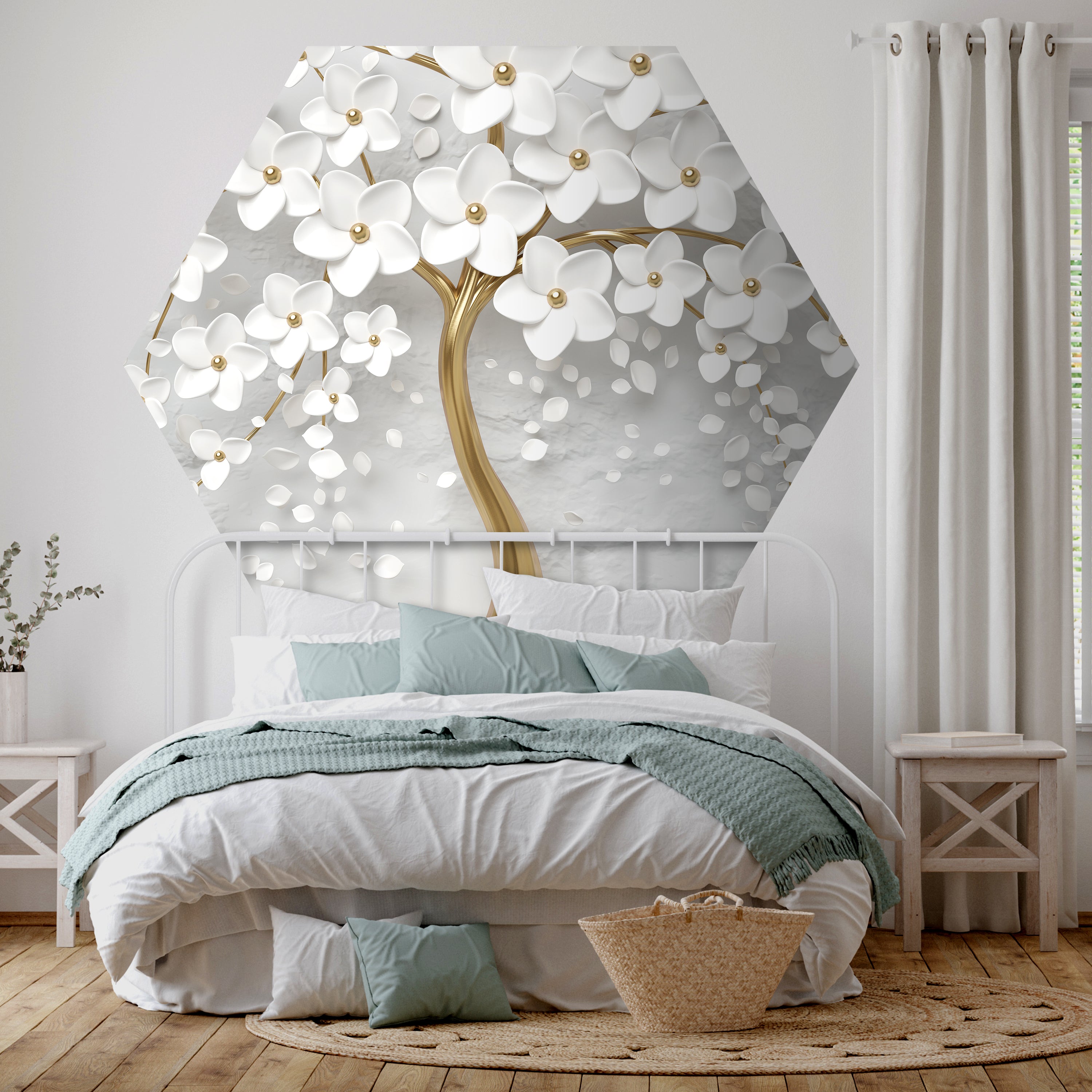 Hexagon-Fototapete Baum mit Blüten M0007