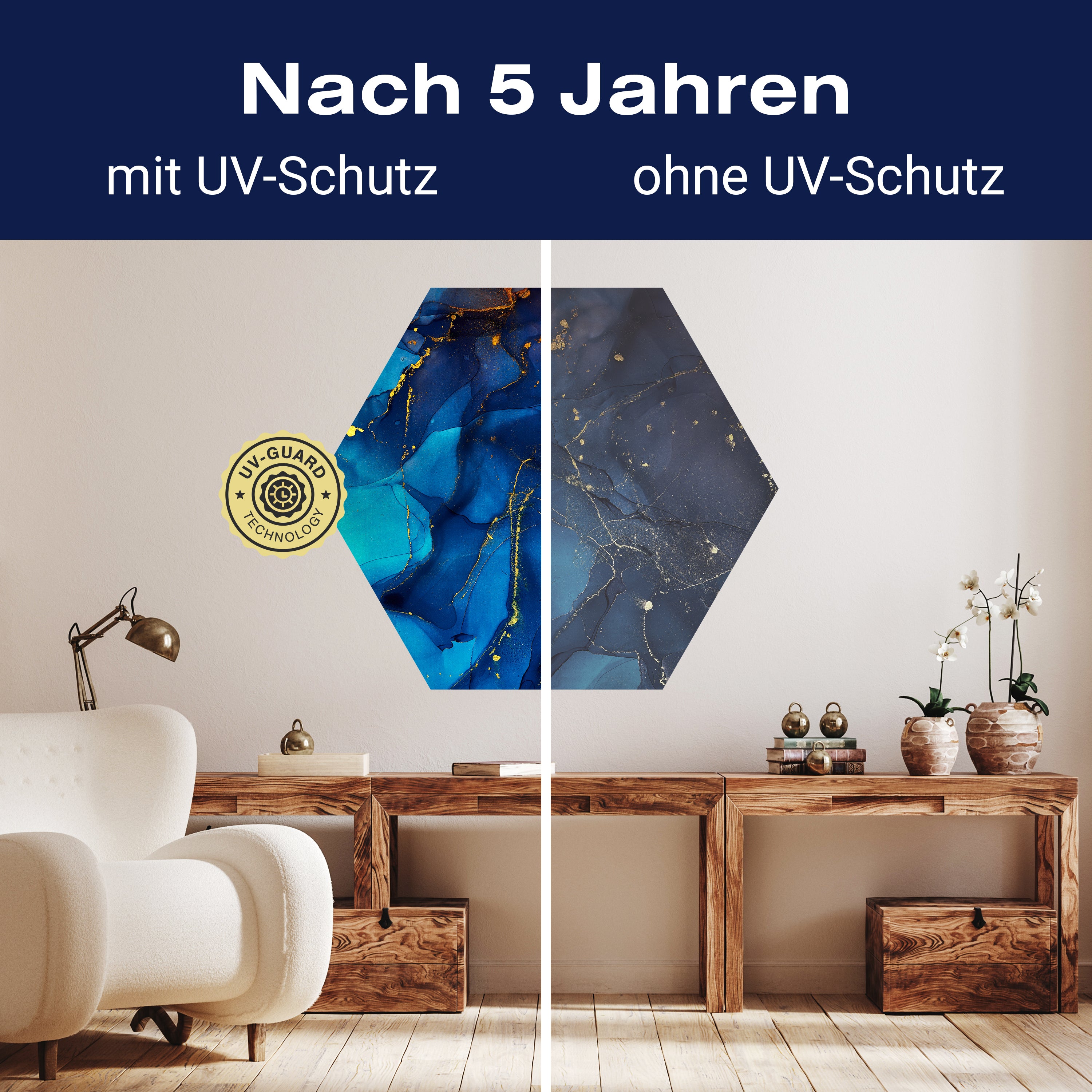 Setze auf die UV-Guard-Technologie, um deine selbstklebenden Panorama-Fototapeten nicht nur atemberaubend, sondern auch dauerhaft strahlend zu gestalten. Dieser fortschrittliche UV-Schutz sorgt dafür, dass die lebhaften Farben und scharfen Details deiner Wandgestaltung gegen die bleichende Wirkung der Sonnenstrahlen geschützt sind. Egal, wie intensiv das Sonnenlicht ist, die UV-Guard-Technologie bewahrt die Brillanz und Tiefe deiner Bilder, sodass sie jahrelang wie neu aussehen. Mach dir keine Sorgen mehr über verblassende Farben oder den Verlust von Detailreichtum. Mit dieser Technologie investierst du in die Langlebigkeit und Schönheit deiner Räume. Steige jetzt um auf UV-Guard und genieße ungetrübte Farbenpracht bei jedem Licht.
