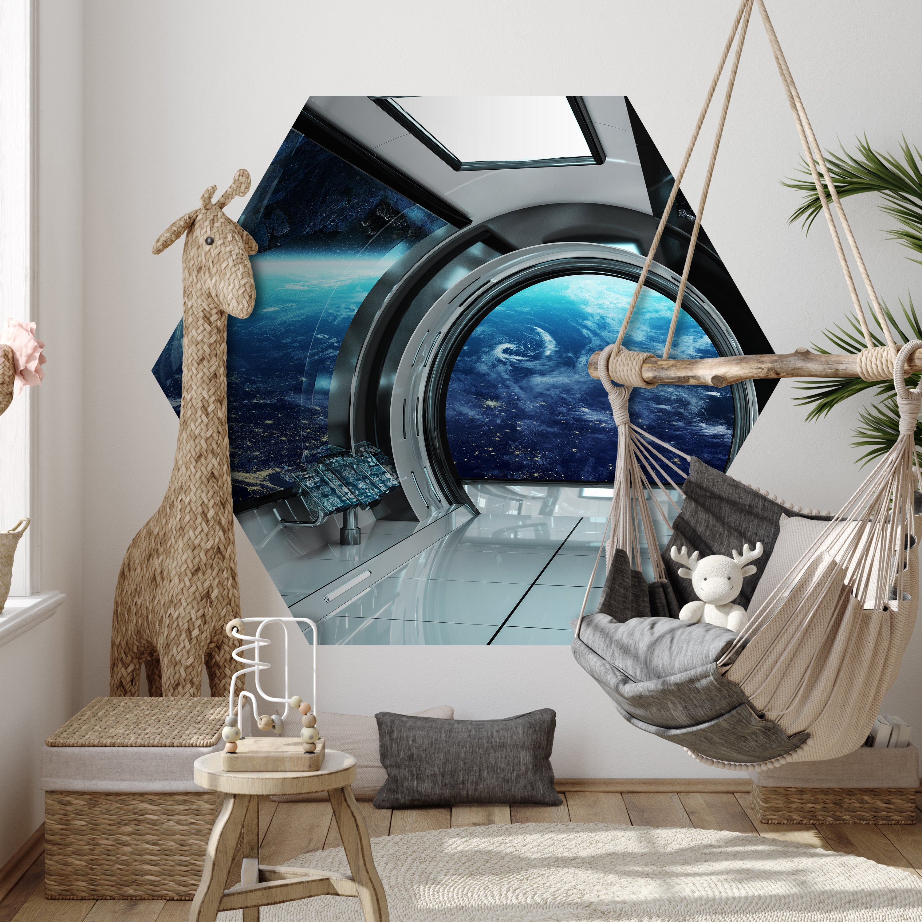 Hexagon-Fototapete Blick aus Raumschiff M0031
