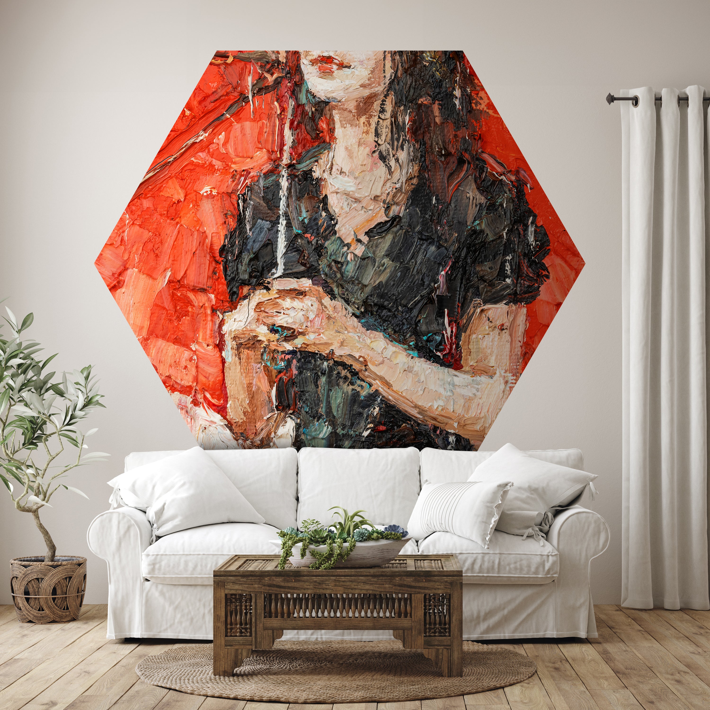 Hexagon-Fototapete Frau Malerei Regenschirm M0050