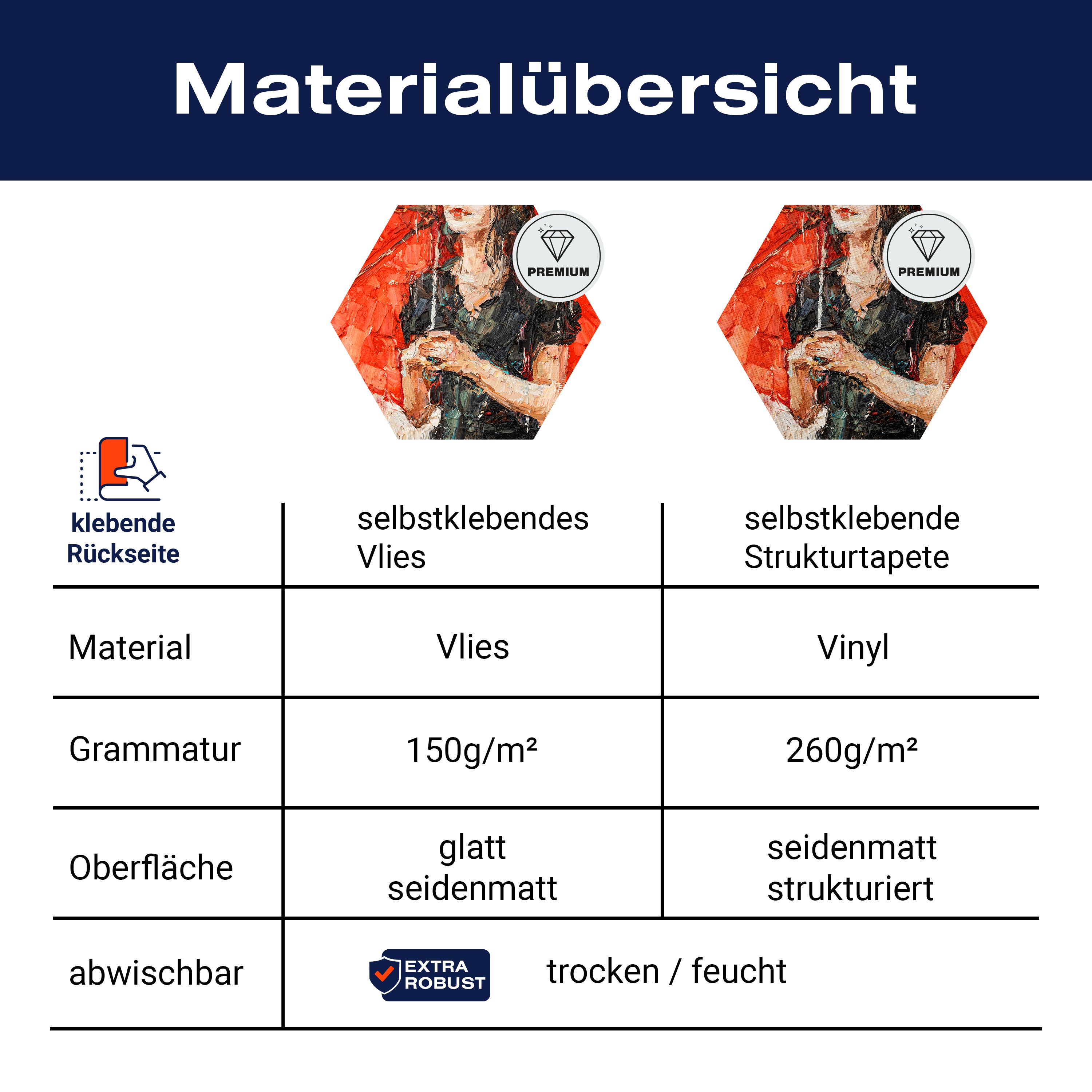 - Selbstklebendes Vlies 150g/m²: Einfach anzubringen, perfekt für Mietwohnungen.