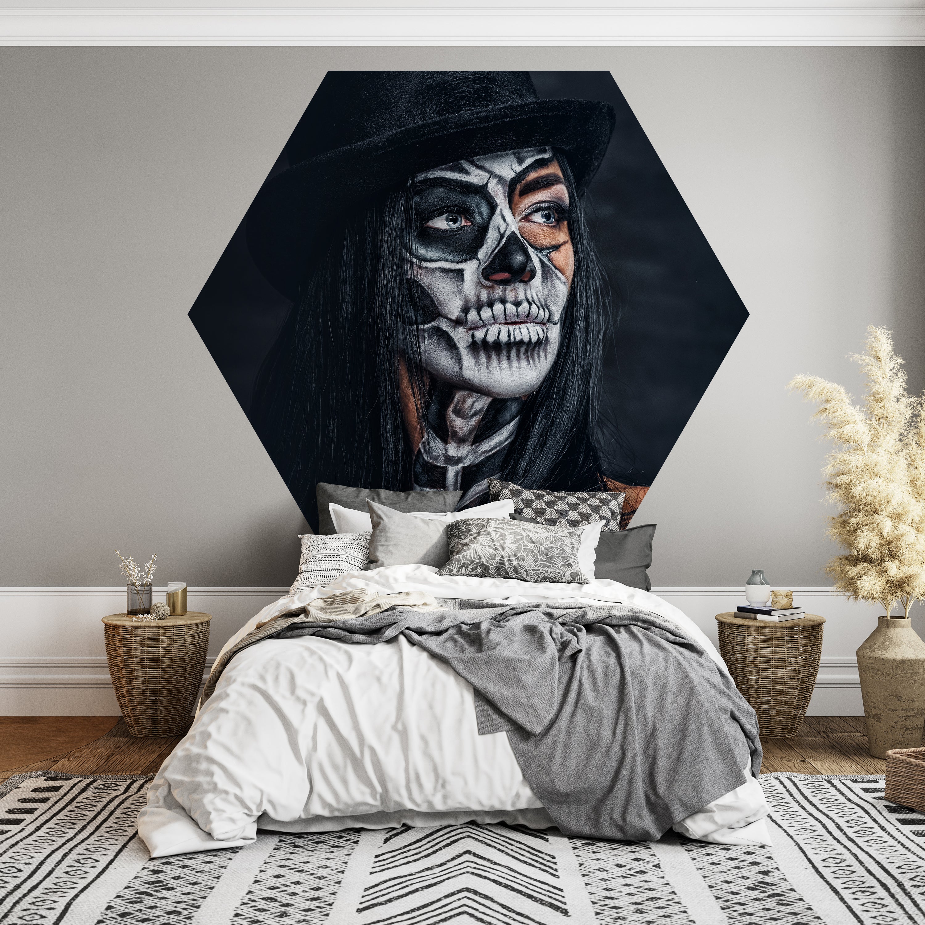 HEXAGON-FOTOTAPETE Frau mit Totenkopf
