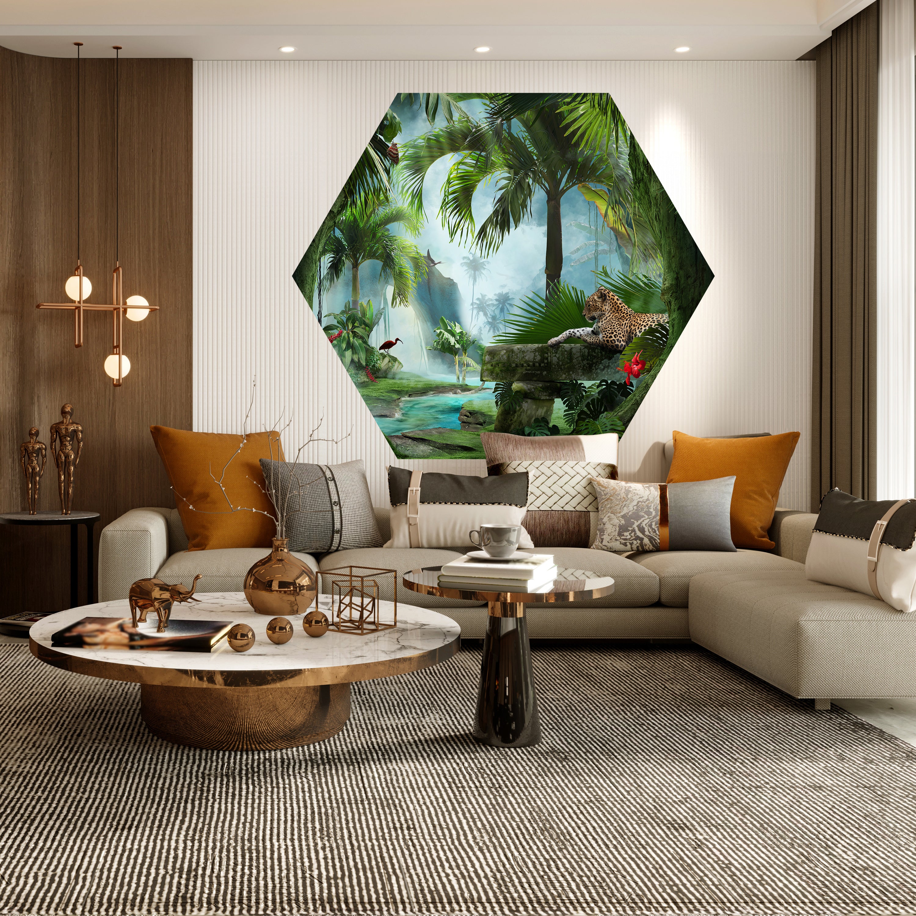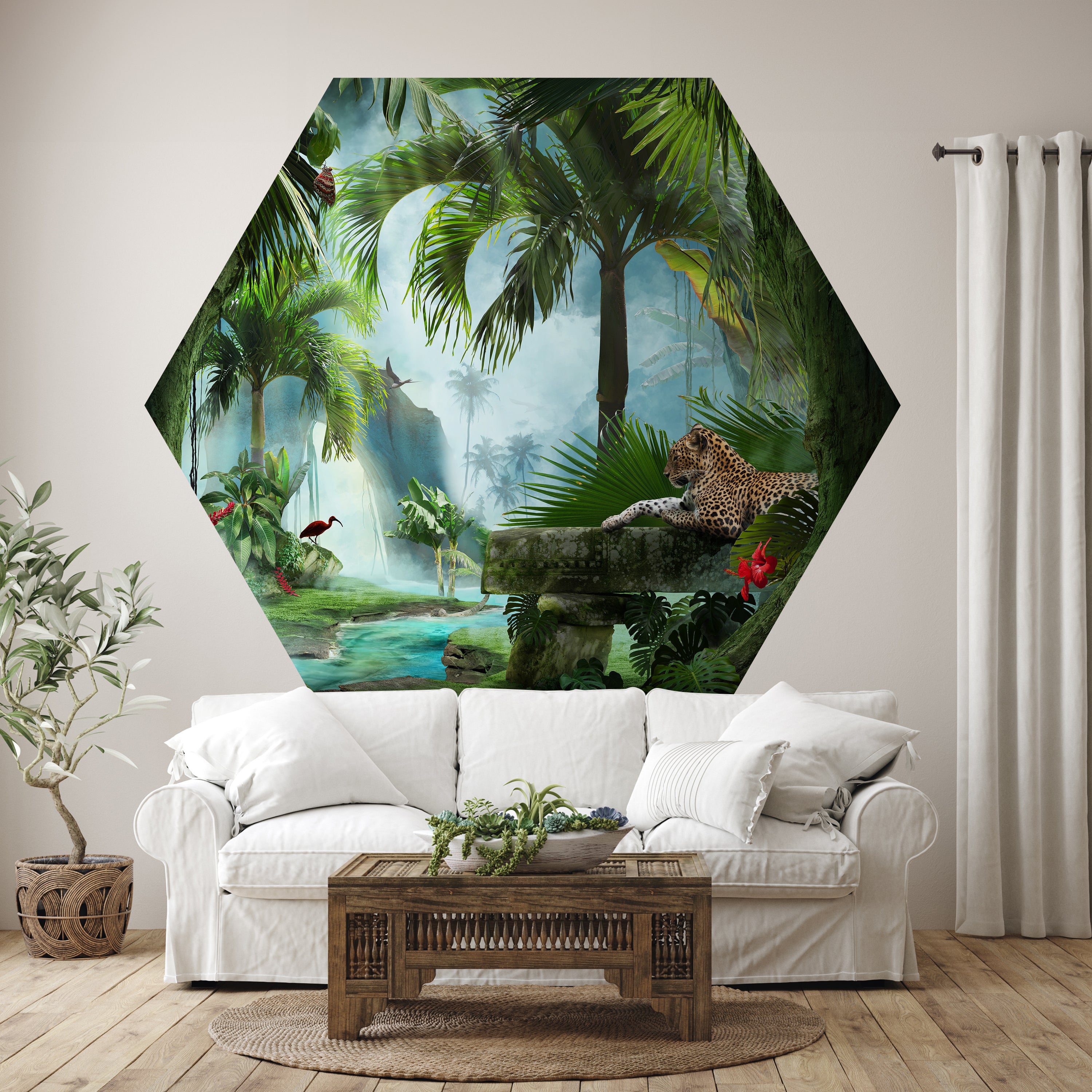 Hexagon-Fototapete Jaguar im Dschungel M0030
