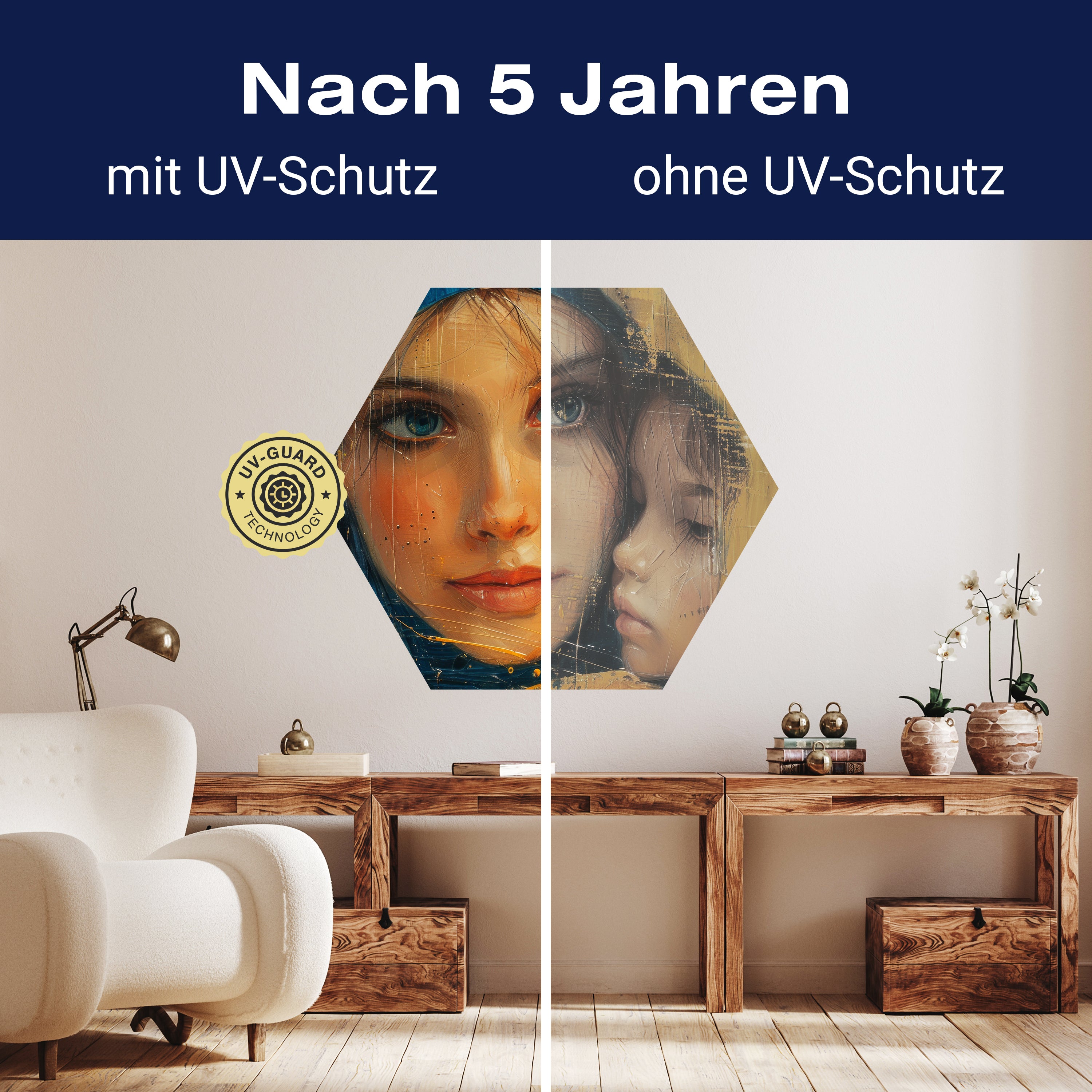 HEXAGON-FOTOTAPETE Malerei Frau Kind