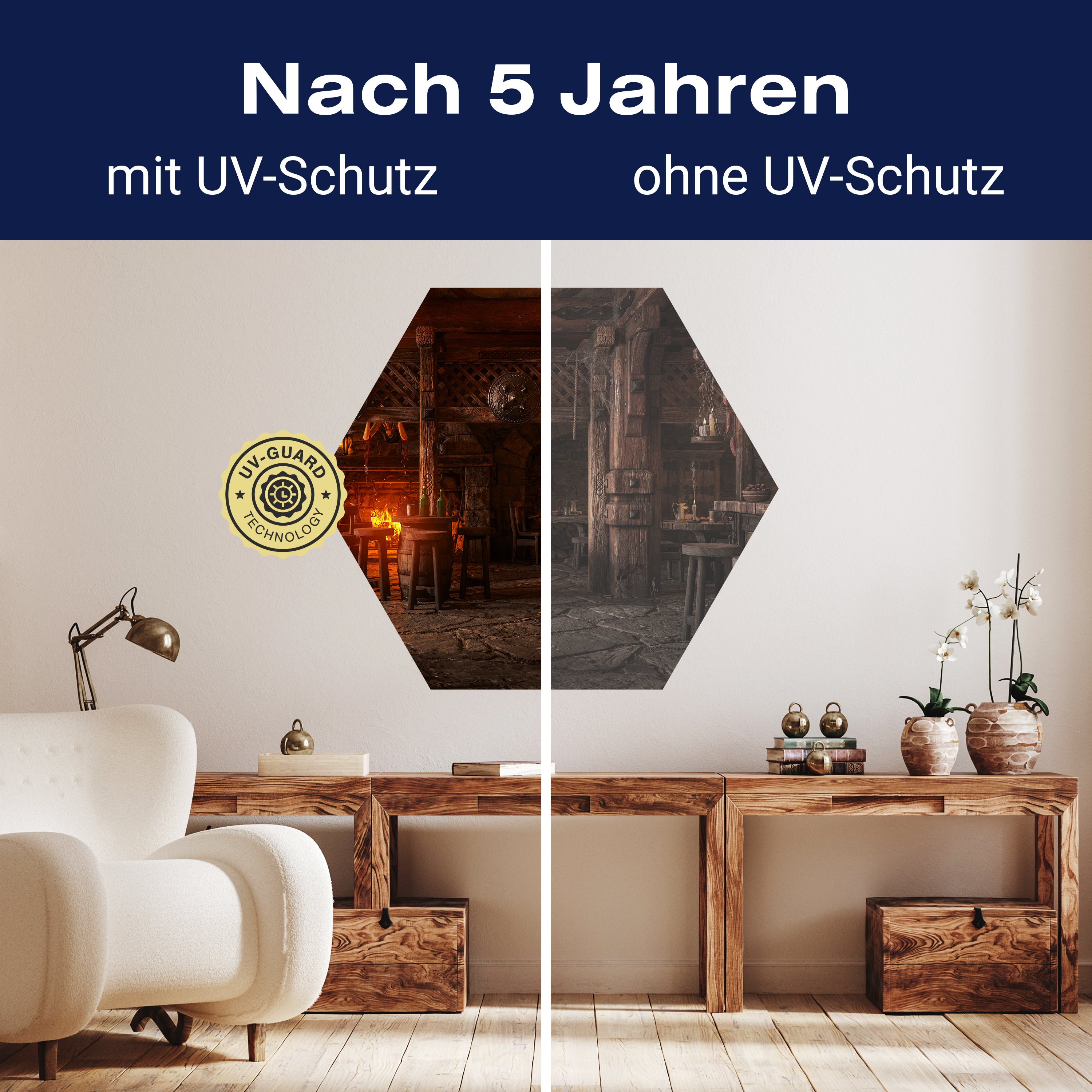 Setze auf die UV-Guard-Technologie, um deine selbstklebenden Panorama-Fototapeten nicht nur atemberaubend, sondern auch dauerhaft strahlend zu gestalten. Dieser fortschrittliche UV-Schutz sorgt dafür, dass die lebhaften Farben und scharfen Details deiner Wandgestaltung gegen die bleichende Wirkung der Sonnenstrahlen geschützt sind. Egal, wie intensiv das Sonnenlicht ist, die UV-Guard-Technologie bewahrt die Brillanz und Tiefe deiner Bilder, sodass sie jahrelang wie neu aussehen. Mach dir keine Sorgen mehr über verblassende Farben oder den Verlust von Detailreichtum. Mit dieser Technologie investierst du in die Langlebigkeit und Schönheit deiner Räume. Steige jetzt um auf UV-Guard und genieße ungetrübte Farbenpracht bei jedem Licht.