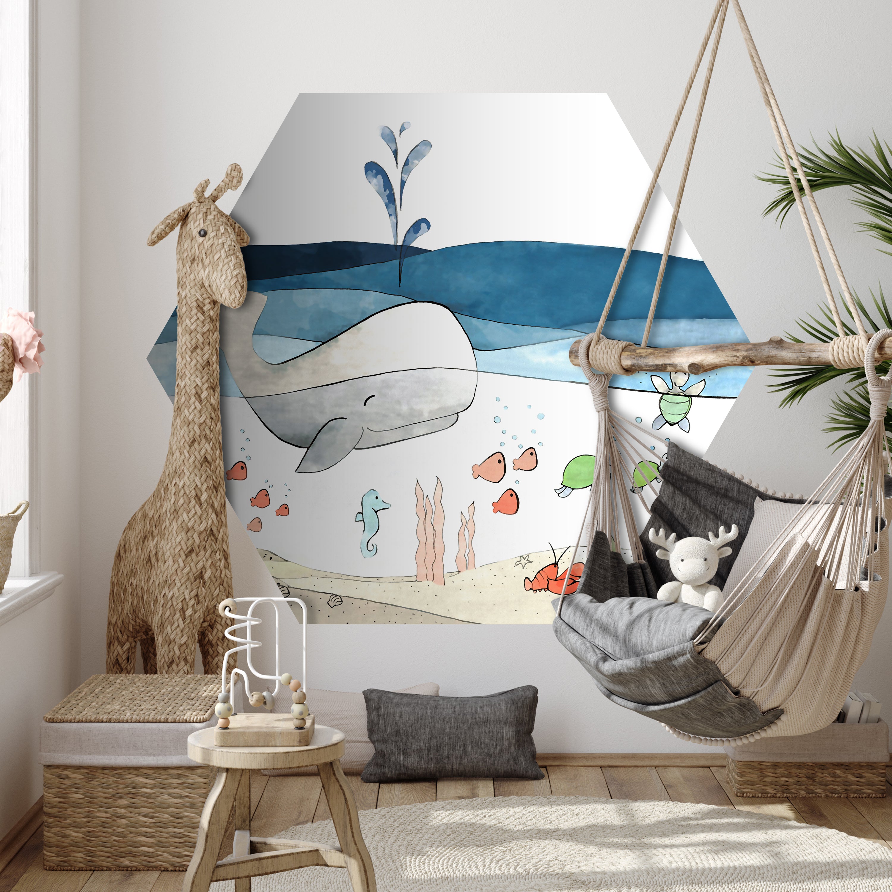 Hexagon-Fototapete Wal Schildkröte Meer M0063