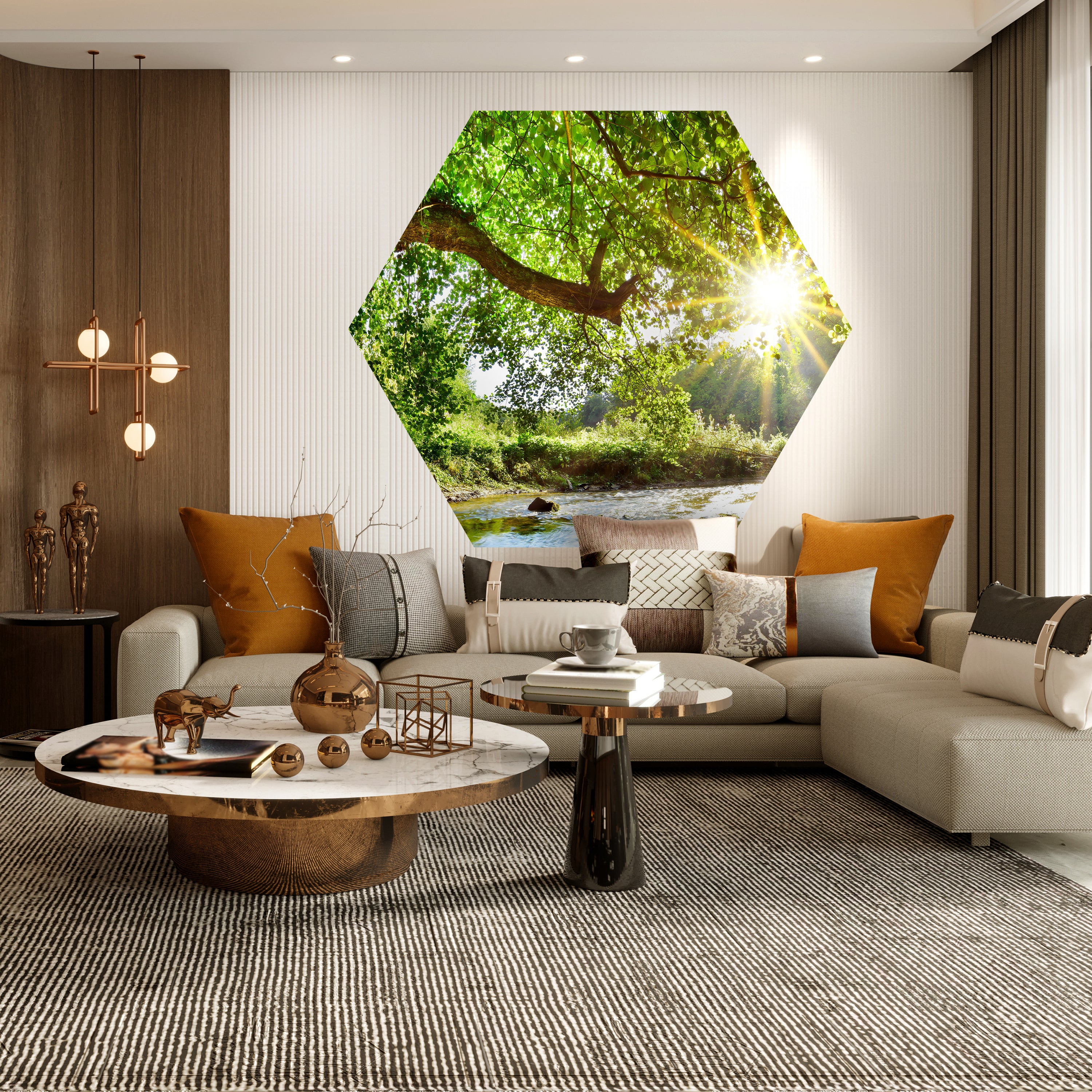 HEXAGON-FOTOTAPETE Wald mit Fluss