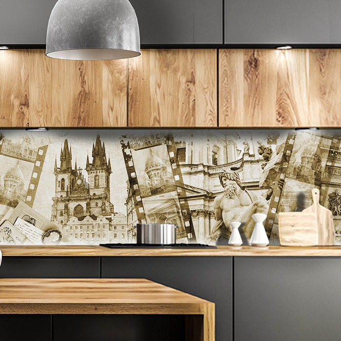 Küchenrückwand Alt Kirche Filmrolle Brunnen Marmor M1252