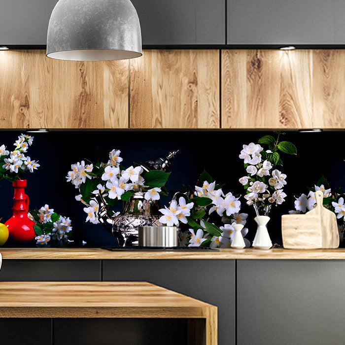 Bist Du es leid, auf die langweiligen, schwer zu reinigende Fliesen in Deiner Küche zu schauen? Stell Dir vor, wie Deine Küche mit einer stilvollen, modernen Rückwand zum Leben erwacht! Unsere Küchenrückwand 'Apfel Vasen Zweige Blätter' ist nicht nur ein optisches Highlight, sondern auch praktisch und pflegeleicht.