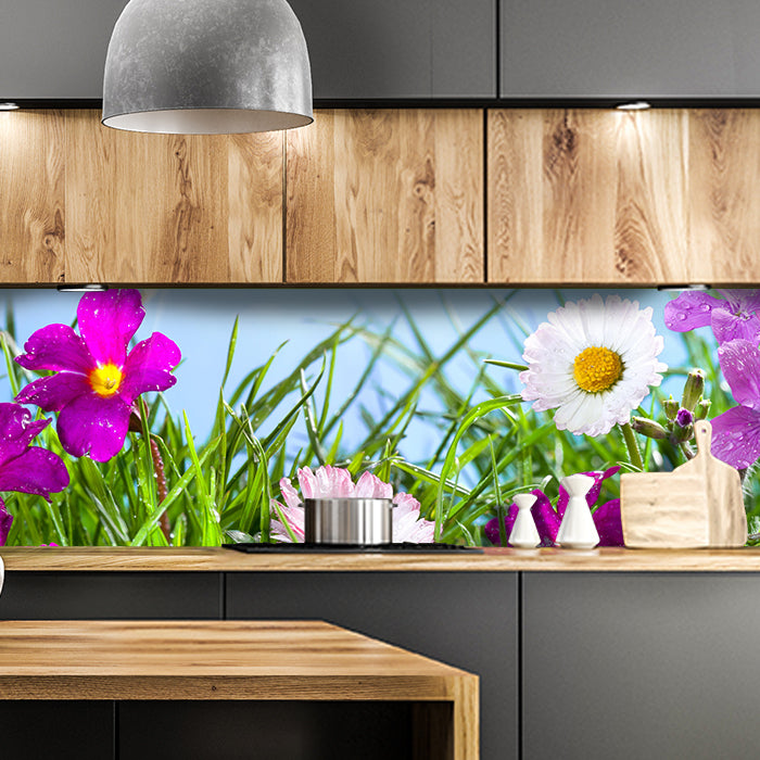 Küchenrückwand Blühende Wiese unter blauem Himmel M1044