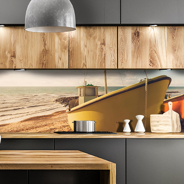 Bist Du es leid, auf die langweiligen, schwer zu reinigende Fliesen in Deiner Küche zu schauen? Stell Dir vor, wie Deine Küche mit einer stilvollen, modernen Rückwand zum Leben erwacht! Unsere Küchenrückwand 'Boote Am Strand' ist nicht nur ein optisches Highlight, sondern auch praktisch und pflegeleicht.