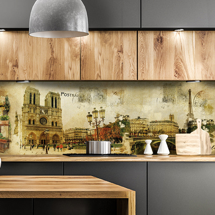 Bist Du es leid, auf die langweiligen, schwer zu reinigende Fliesen in Deiner Küche zu schauen? Stell Dir vor, wie Deine Küche mit einer stilvollen, modernen Rückwand zum Leben erwacht! Unsere Küchenrückwand 'Eiffelturm Notre-Dame Postkarte Fluss' ist nicht nur ein optisches Highlight, sondern auch praktisch und pflegeleicht.