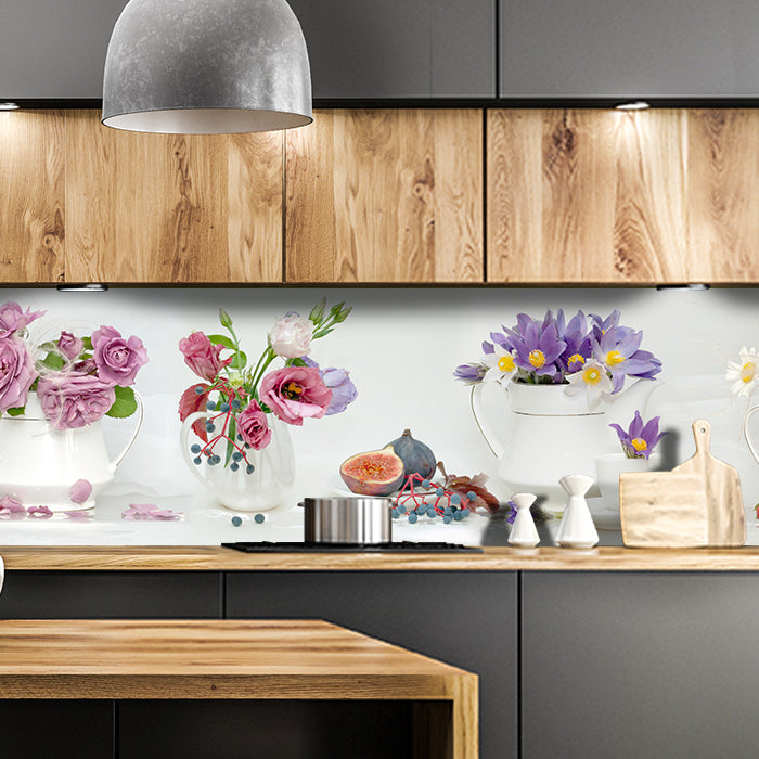 Küchenrückwand Erdbeeren Blumen Tassen Kannen Feige M1315