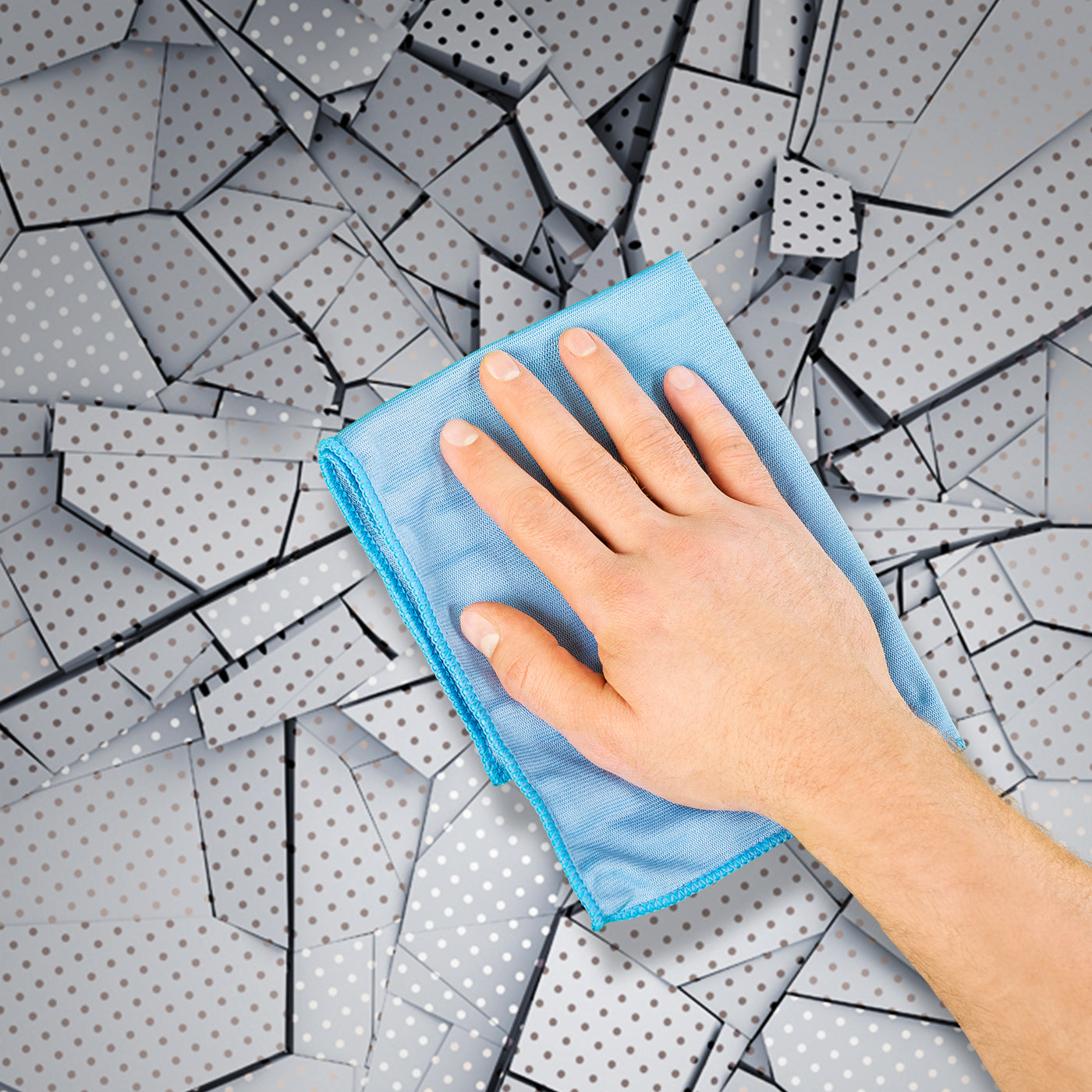 - Wische die Oberfläche mit einem feuchten Tuch oder Schwamm ab.