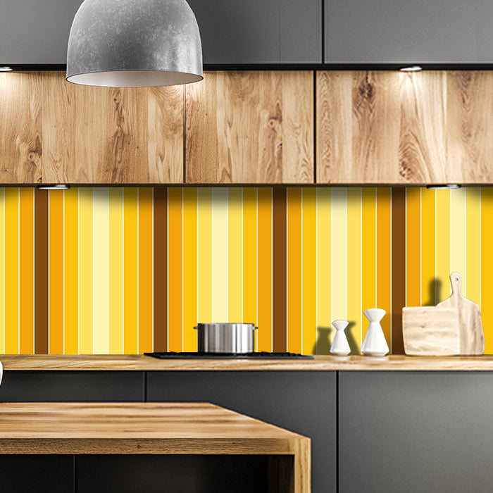 Vergiss die Tage, an denen Spritzer und Flecken Deine Küchenwand ruiniert haben. Mit der Küchenrückwand 'Gelb Muster' gehören solche Sorgen der Vergangenheit an. Das hochwertige Material sorgt dafür, dass Deine Küchenwand gegen Wasser, Öl und andere alltägliche Missgeschicke resistent ist. Ein einfacher Wisch, und sie sieht aus wie neu – ohne den Einsatz von aggressiven Reinigungsmitteln.