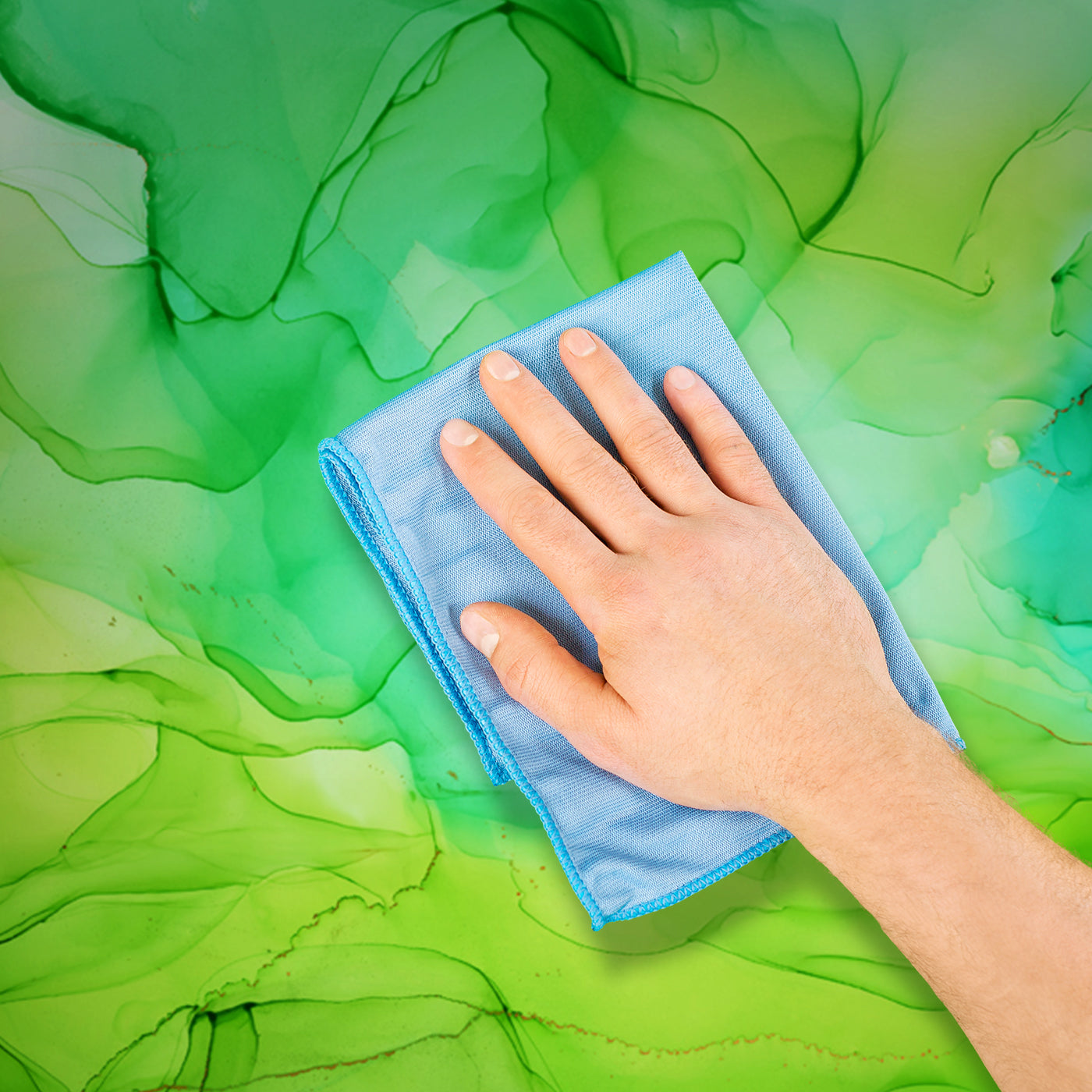 - Trockne die Oberfläche mit einem sauberen, fusselfreien Tuch ab, um Streifen oder Wasserflecken zu vermeiden.