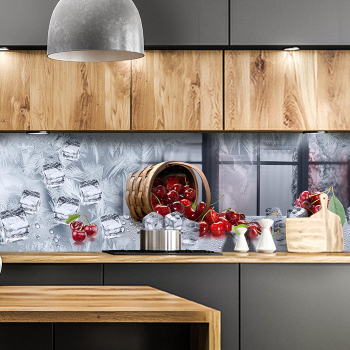 Küchenrückwand Kirschen Korb Eis Kalt Frost Fenster M1138