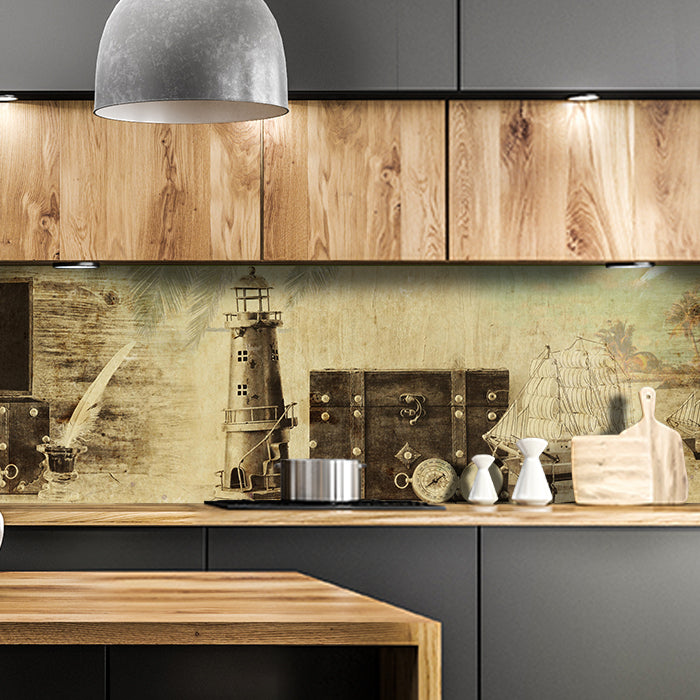 Küchenrückwand Maritim Leuchtturm Schiff Kompass M1096
