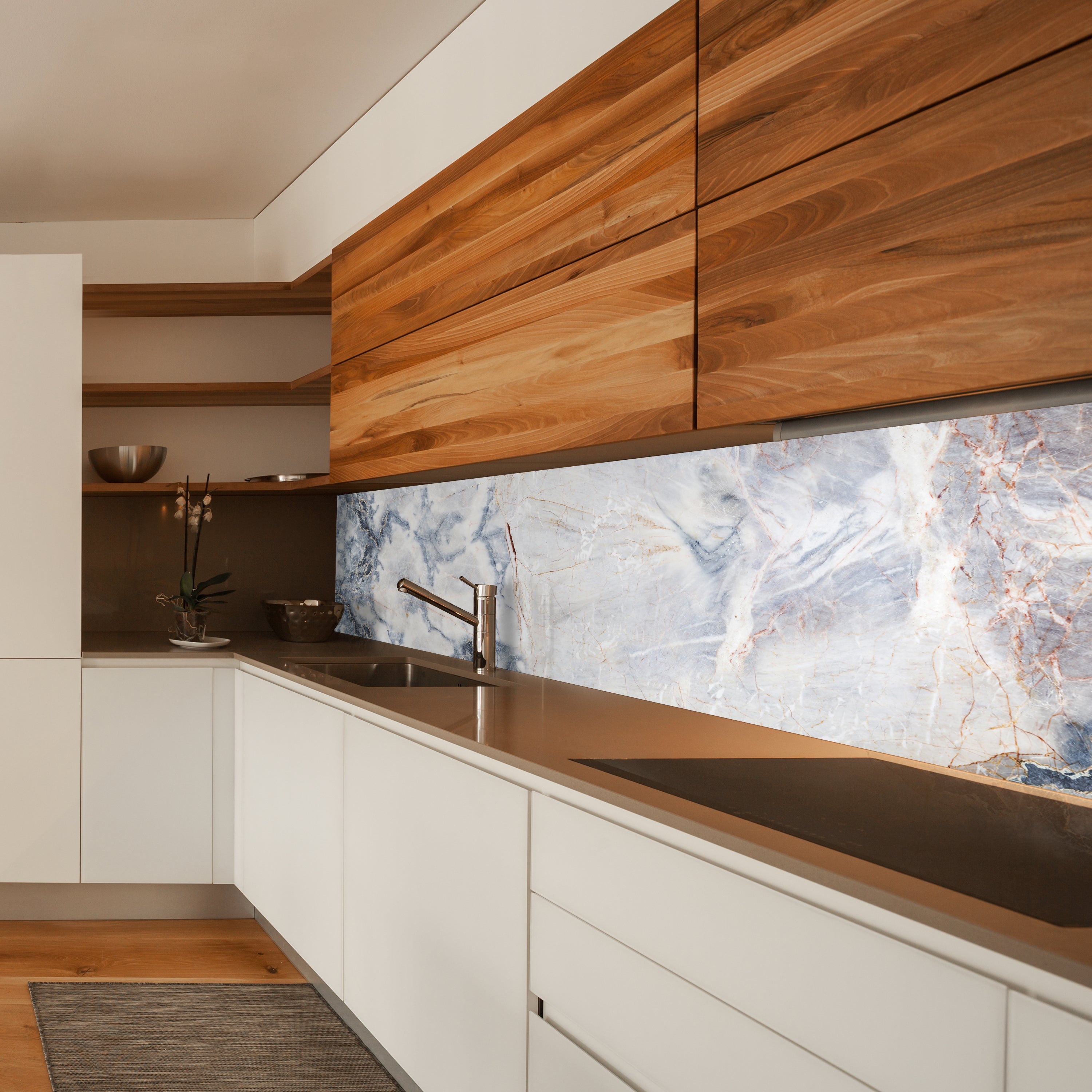 Die Pflege der Küchenrückwand spielt ebenfalls eine Rolle. Regelmäßiges Reinigen und die Vermeidung von aggressiven Reinigungsmitteln oder Kratzern können dazu beitragen, die Lebensdauer der Rückwand zu verlängern.