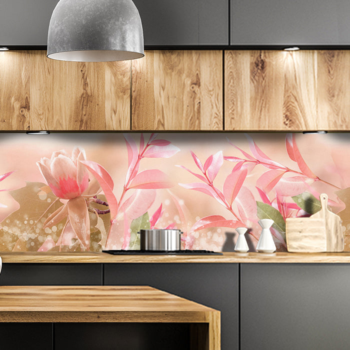 Küchenrückwand Natur Blumen Blätter Rosa Grün Blüten M1188