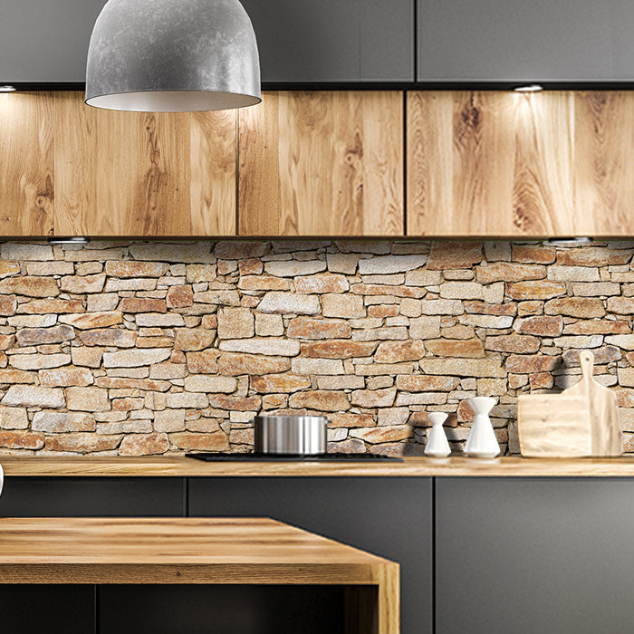 Bist Du es leid, auf die langweiligen, schwer zu reinigende Fliesen in Deiner Küche zu schauen? Stell Dir vor, wie Deine Küche mit einer stilvollen, modernen Rückwand zum Leben erwacht! Unsere Küchenrückwand 'Natursteinmauer Hell' ist nicht nur ein optisches Highlight, sondern auch praktisch und pflegeleicht.