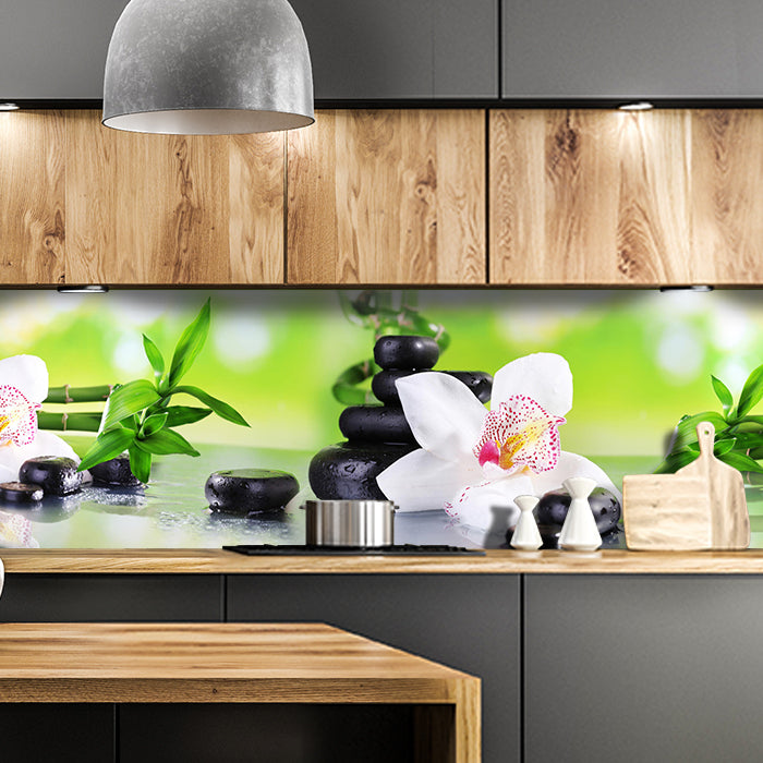 Küchenrückwand Orchidee Bambus Steine Glas M1087