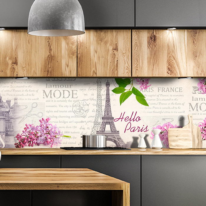 Küchenrückwand Paris Eifelturm Blüten pink rosa text M1389